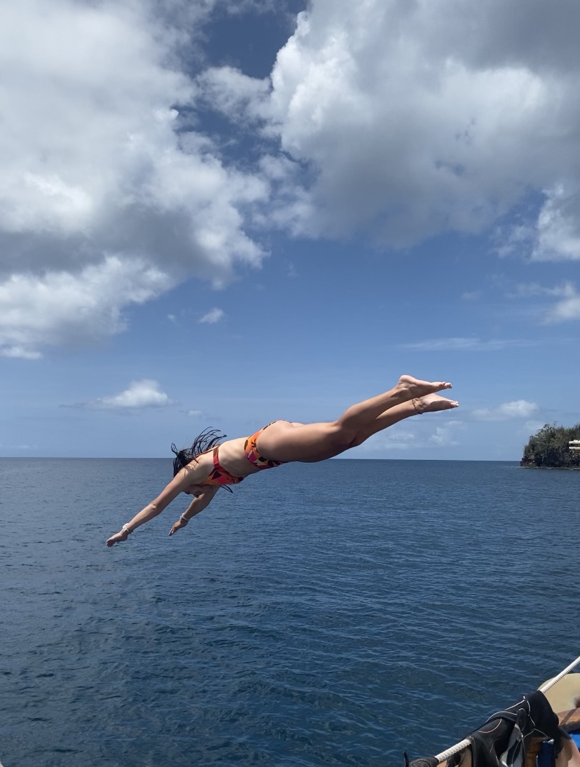 The crew filed back below deck, and I was left alone to sit in the sun. I heard talking come up from the companionway. They said something about the ocean, waves, energy, and surfing! It seemed really interesting, I thought! Although the crew came back up looking very sleepy (or at least what I imagine “sleepy” looks like; I am, in fact, a hose and do not sleep). Henry then was tasked with splitting the dive groups up, much like Elrond was tasked to make a decision about the group worthy of taking the ring to Mordor in Lord of the Rings. As dive group one got ready, some chose to nap on deck, some chose to work on the essays they have due tonight, but Meg and Henry decided they wanted to work on their dives and neglect all of their school responsibilities. Henry’s dives got leaps and bounds better! Meg also worked on her dives! Now comes the worst part of my day. Anytime anyone goes in the water, they always use me to clean themselves. It’s disgusting! They know that I basically am throwing up all over them, right!? gross (Some people also use me for wayyyyyyy too long and waste all the precious water that Steve spends ages refilling)