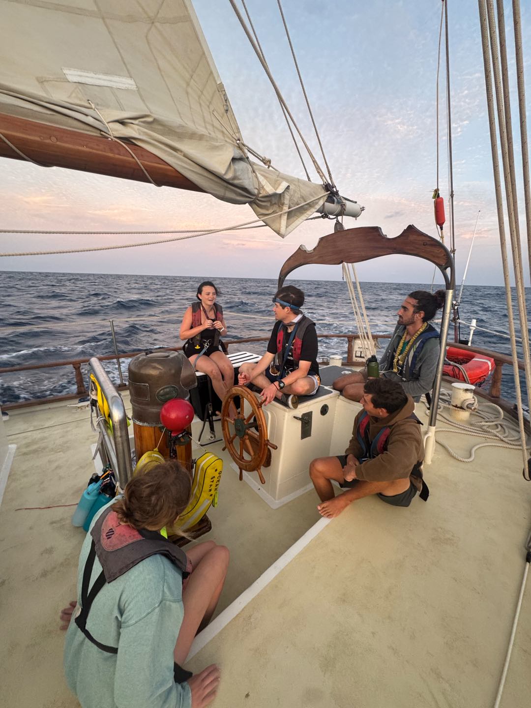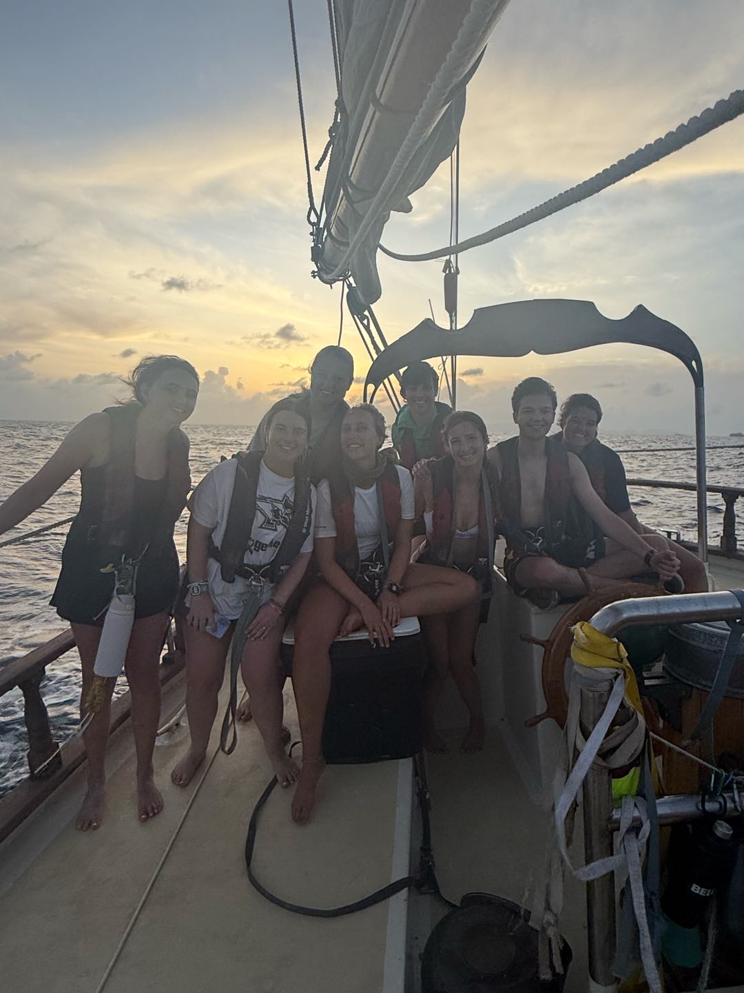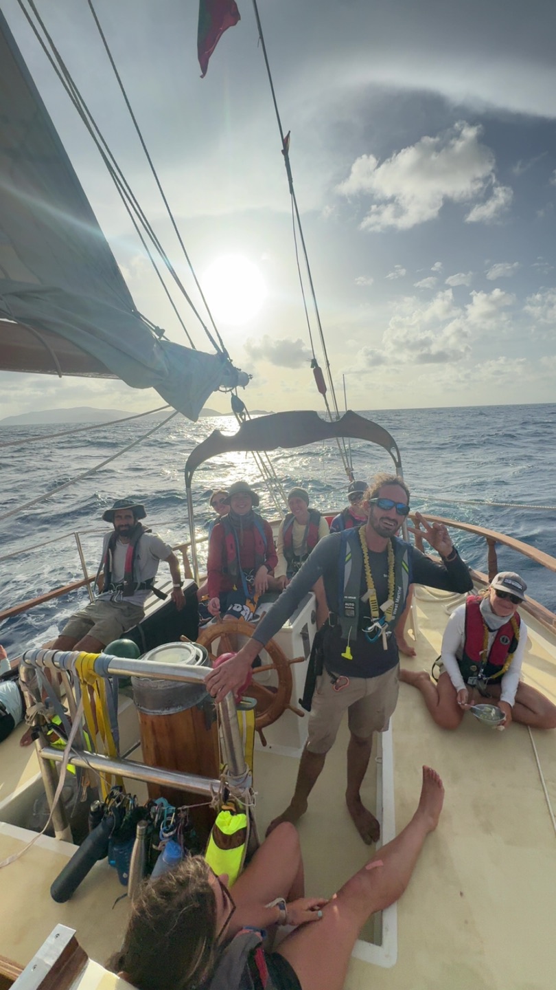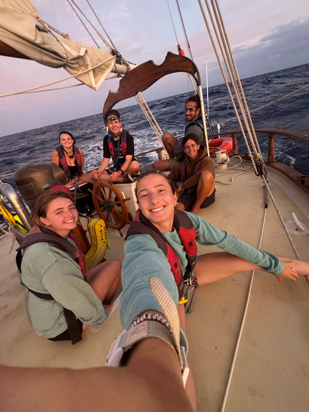 Big action on Ocean Star today. After lunch, which was chicken quesadillas, we prepped the ship and set sail for Saint Barths. We set up watch groups that rotate every 4 hours to watch the ship. The journey was a rough one, with most of the crew getting seasick within the first couple of hours. We learned how to raise and take down the sails, as well as keep on course and helm the ship. Dinner was chicken Caesar salad bowls, and the first night watch began shortly after. The journey lasted through the night, where we got a perfect view of the night sky. The stars were crystal clear.