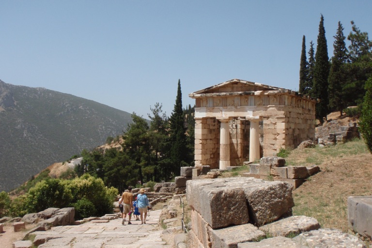 Early this morning, 23 eager and slightly exhausted students boarded a bus on a journey to the center of the world. Well, the Ancient Greek world, at least. The Temple of Apollo in Delphi was not only the epicenter of Ancient Greece, but it was and continues to be a place of magnificent natural beauty. Nestled in incredible mountains were two thousand-year-old monuments to a few of the deities that were a daily part of Greek life. From the moment we left the bus, there was hushed awe, and the feeling of walking on the hallowed ground never left us. Having traveled to many places, I have to say that Delphi was by far one of the most incredible spots I have ever encountered, and I know it will be a place of history that will live on real and palpable in our ARC students for a long time to come.