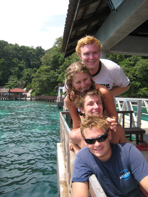 Day 62. Less than 30 days. It is hard to imagine that we are 2/3 of the way done with this trip. It’s funny to me. We can’t wait for our own anchor watches in the middle of the night to be over, yet wish the clock would stop as we sail around these magnificent Islands of Malaysia. After days like today, it is hard to imagine that you would rather be anywhere else in the world. Today was a day for the records. On this sunny, beautiful day in the paradise of Palau Payar, we swam with sharks. Well, technically, we snorkeled and swam with them as they were feeding at the Marine Park, but that is even more awe-inspiring. The sharks, fish, and other sea creatures swim into the sandy beach area to feed every day at around 1 pm and then leave again to swim out to the ocean depths. It is truly magical to see the sea life around you, and some were lucky enough to see a huge barracuda hanging out on the edge of the reef, past the sandy feeding area.