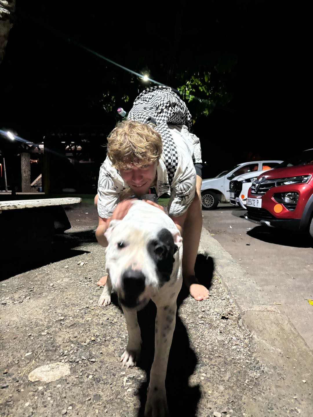 On the way back to the dinghy, Shane and I talked about our favorite show, One Piece, and we had a dog following us. Most likely because the dog smelled the pizzas in Shanes hands. I adored every dog we saw today. And we saw many.