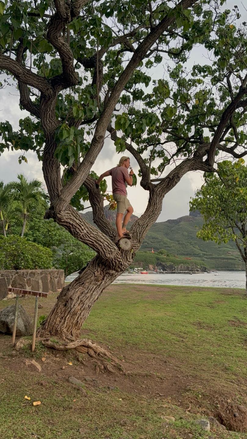 We reunited with more people at Le Nuku Hiva, enjoying the scenery while chilling in nice chairs. I must take a moment to let you all know that the scenery is stunning here. Anyway, I figured that I was ready for more words in Te Eo Enana, which I learned is a dialect spoken in the Northern islands where we were. So I asked the lady behind the counter (also in a small town but not elderly, so alas she too is not yet eligible to be the woman from that one Pearl Jam song (PNW for the win)) how to say two other words I thought would be important to know: hello and goodbye. I got my answer: kaoha and apai respectively. No, three words are not enough to really know a language. I know that it is futile to try to learn a language in one day. Still, I found that the deeper connections I made did not come from me saying merci, but from me saying kou tau nui. This was my way of showing that I cared about this little language on a little island in the Pacific.