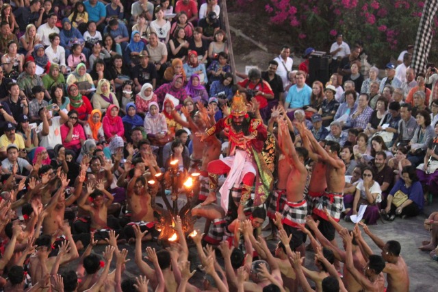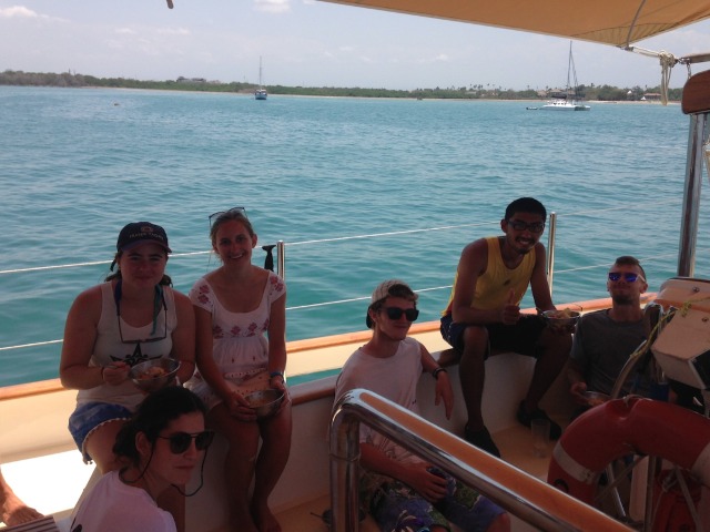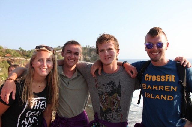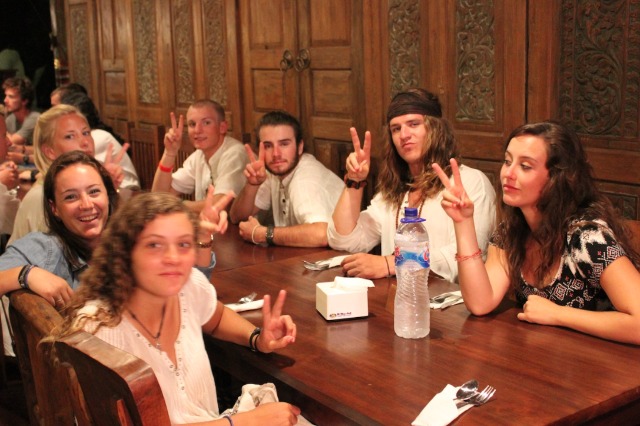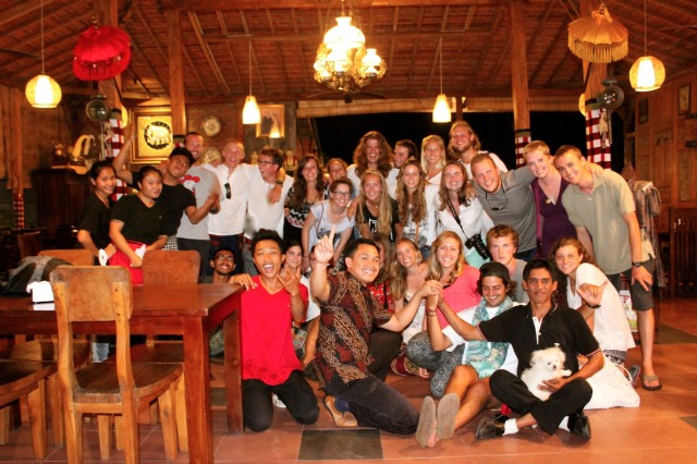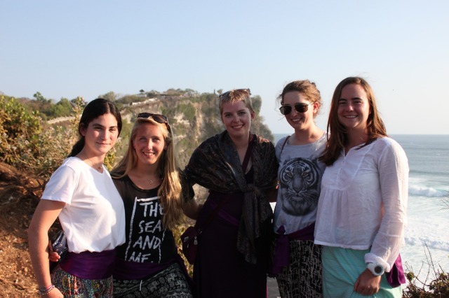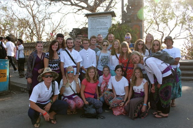 After an overnight passage from Gili, Watch Team 2 dropped the anchor in a reef-protected bay on the east side of Bali. We allowed a bit of a lie-in to get everyone caught back up on sleep and then got Argo all to put away from her passage. Following a delicious lunch of tortilla soup, we enjoyed our jump-in showers in the clear blue waters surrounding the boat. Finally, we were ready to head to shore for the main event of the day – a visit to the Uluwatu temple to see the magnificent views and the Kecak and Fire Dance. Located on the southwest corner of Bali, Uluwatu provides dramatic views of cliffs dropping into the Indian Ocean, complete with some amazing waves crashing on the shore. We took in the breathtaking scenery while we walked along the path towards the temple and then continued to an outdoor stadium where we took our seats for the Kecak and Fire Dance. It was a traditional Balinese performance in which about 50 men provided all of the background “music” through vocals, primarily short bursts of sound that sounded like “kecak!” Also, several performers in elaborate costumes acted out the traditional Hindu epic of the Ramayana. It was a very cool first experience for everyone on Bali to get a bit of the local culture, and the beautiful sunset into the ocean in the background didn’t hurt either. Although the views and performance were the favorite part of the day for some, I have a feeling most people would say they really liked what came after – dinner. We all went to have dinner together at a traditional Balinese restaurant (we pretty much took over the whole place with our group!) and feasted on nasi goreng (fried rice), chicken satay, local snapper and prawn, spring rolls, calamari, and many a fried ice cream for dessert. It was nice to have a good meal together on land, and the people at the restaurant were so excited to have us. We finally headed back to Argo late in the evening; everyone was pleased with their first day in Bali and excited to explore more over the next few days.