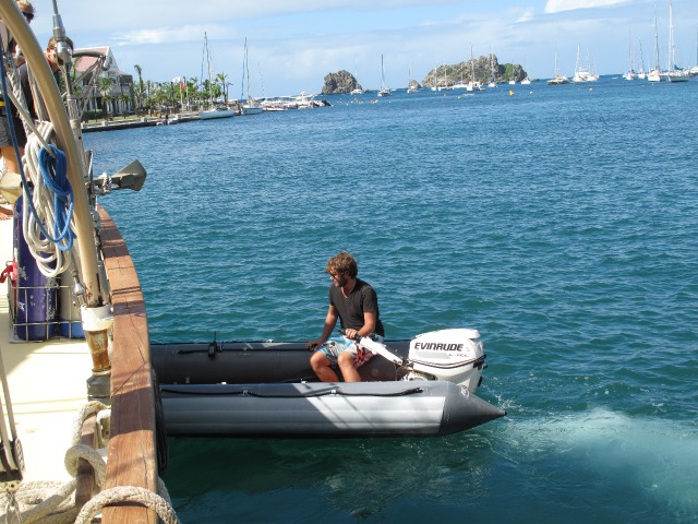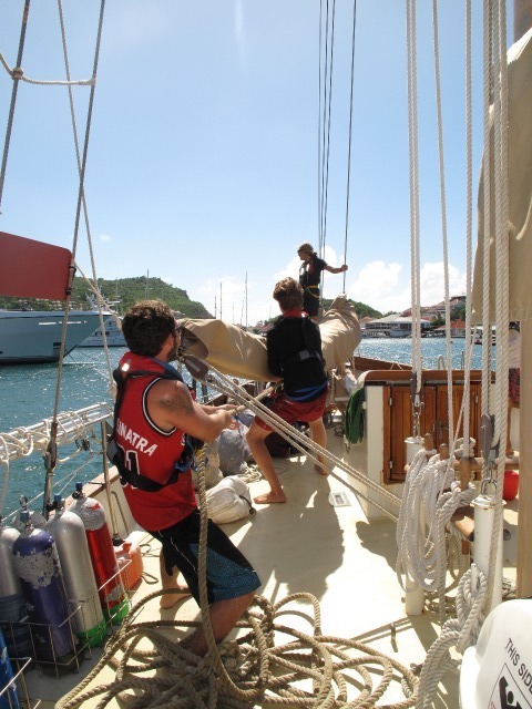 Today, we started the day with some cereal, toast, yogurt, and milk. After breakfast, Emma and I convinced some crewmembers we met at the marina to let us on their superyacht for a tour. It was hysterical to see the difference between a multi-million dollar yacht and a classically rigged Ocean Star. Although the yacht was incredible, we both agreed that we preferred the more traditional, cozy home Ocean Star provides for us. Back on Ocean Star, it was time to leave Gustavia. As Ocean Star was docked closely between two yachts, it was necessary for us as a crew to conduct a highly impressive maneuver to get off the dock at St. Barths. It was so impressive that we actually attracted a small crowd of people taking pictures as we left the dock.