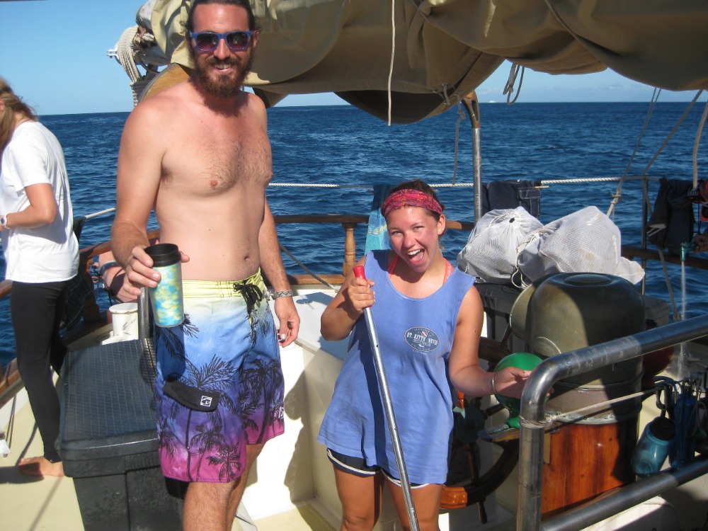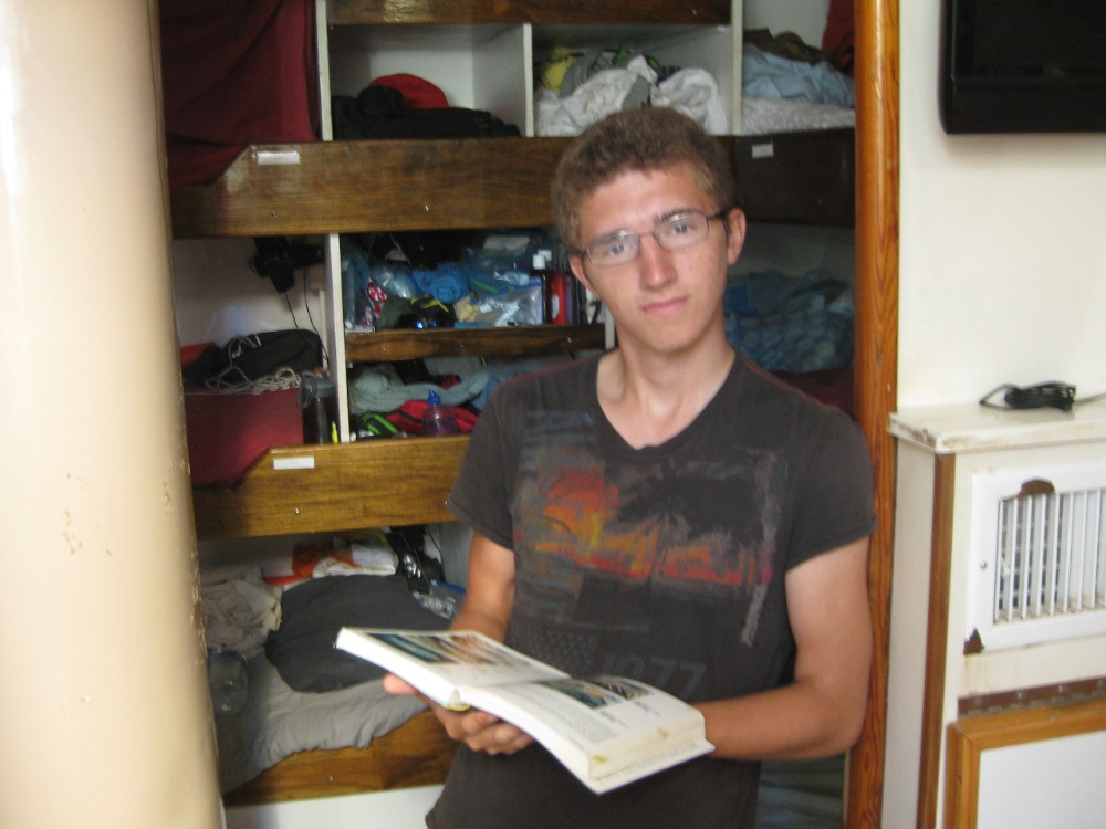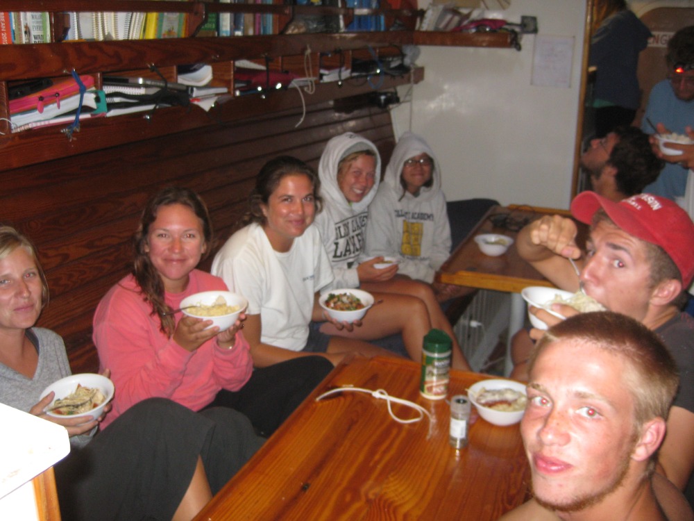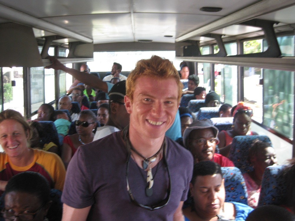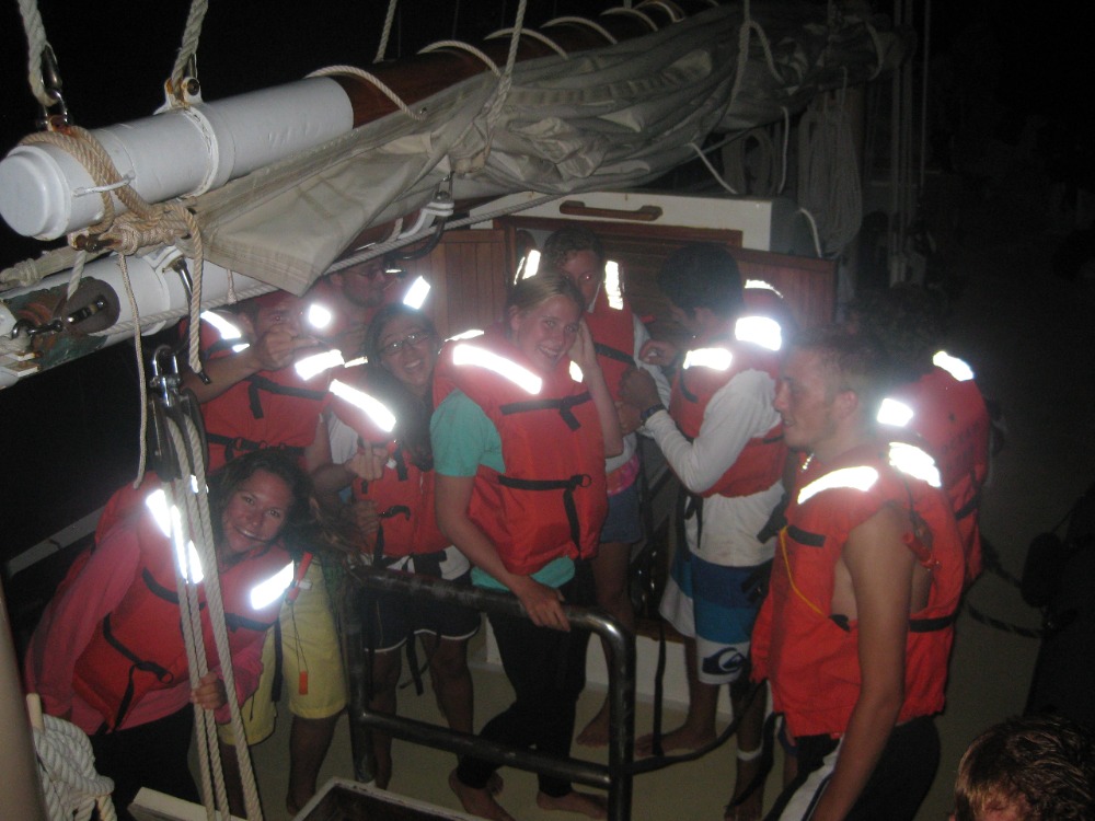 We woke up this morning in a rather windy bay just outside of Deshaies, in the Basse-Terre of Guadeloupe. Scott and JB cooked us a solid egg breakfast (Picture 1), with help from Cayley, of course, for cracking the shells (Picture 2). After cleanup, which consisted of our deckies Andrea, Dana, and Casey thoroughly scrubbing the deck (Picture 3), we split into several different groups. Some of us stayed on the boat to study with the nerd of the day, Tyler (Picture 4), while others went to shore to search for wifi cafes. A third group, consisting of Nick, Emma, Momo, and myself, decided to venture out into the mainland and took a bus to Point–Pitre. It was a very enjoyable ride, with plenty of legroom and scenic views of the coast. We had a savory lunch at an Italian pasta joint (Picture 5), located in one of the nicer and more modern malls we’ve seen to date (Picture 6). We took the same route on the return trip but encountered quite a different bus, one filled with Guadeloupans returning home from work! (Pictures 7 & 8 & 9) We made the best of the squeeze and hustled back to the boat for Mike’s SLD project, during which time we learned to tie various different knots (Picture 10). After a rare dinner in the salon (Picture 11), we were graced with a false alarm (Picture 12). A fun day, to say the least!
