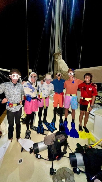 Our day began 15 minutes late because I failed to charge my phone before bed, and my alarm didn’t go off for wakeups. But thankfully, Beck’s bacon fiasco caused breakfast to be an hour late anyway. Despite our late start, Beck and Lainey (Dive Masters in Training!) were entrusted to take your children on a scuba diving adventure with no supervision!!! Do not fear. They all returned alive and well. I, unfortunately, had to stay behind due to my gashed open head AND swimmer’s ear argh. We departed from Pink Beach, headed to our next destination, and had class on the way. At one point in NavMaster, Lainey got Gabe into a southern accent and challenged him to hold it for the whole day. Gabe immediately accepted this challenge and said he would not break character for the rest of the day. He called himself “Kosher Kowboy” (at least that’s how I imagine it would be spelled), and then he named himself “Fisher.” Born in Alabama, moved to Tennessee, and goes to School in Georgia.