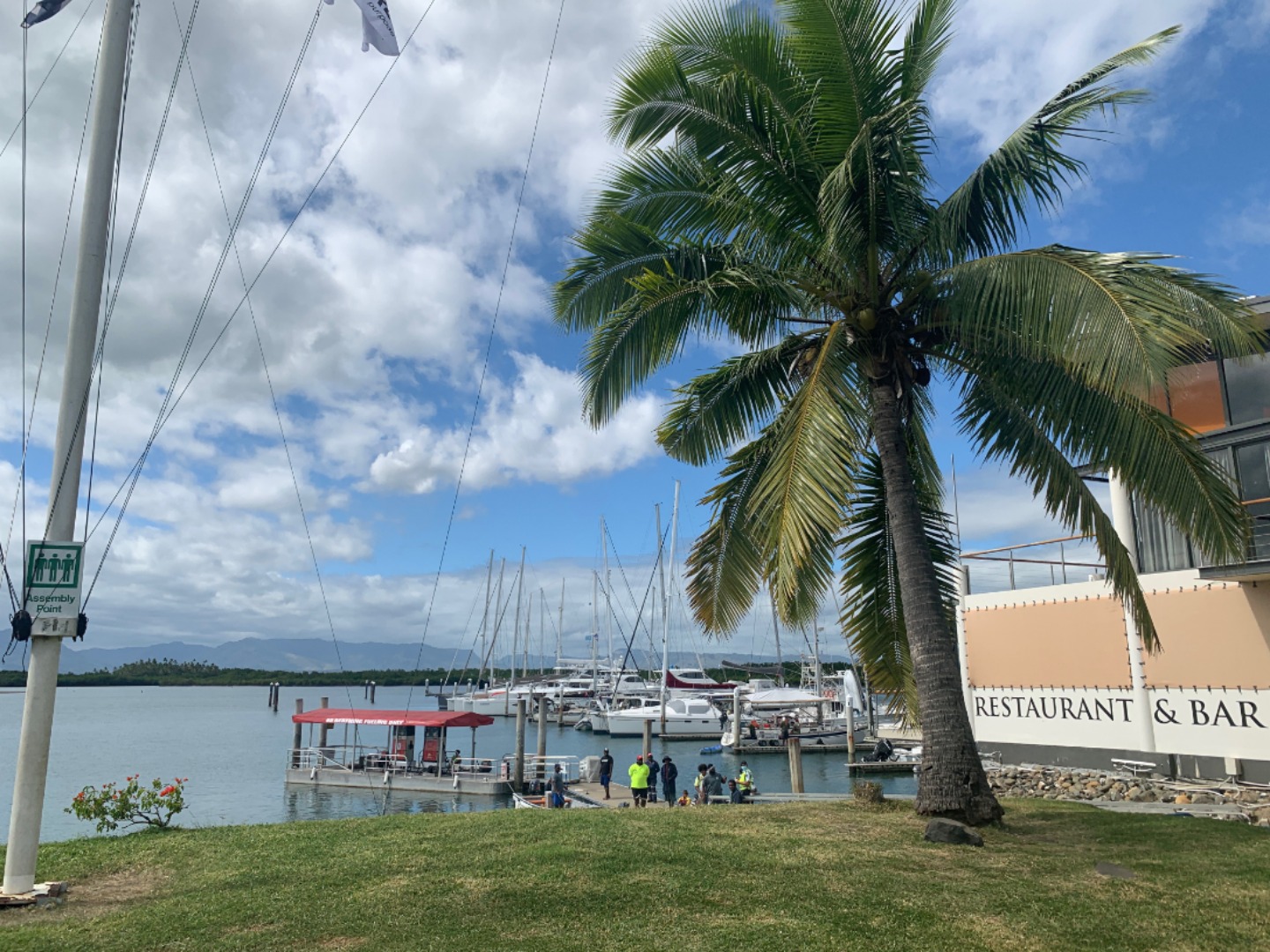 Today was an exciting day because we got approval that all crew members were COVID-19 Negative and that we were cleared to go onto land. We took groups to go to a supermarket and get some supplies (the store did not have enough peanut butter for all of us). When we got back to Argo, we dug into all of the snacks and candy that we got at the market, had lunch, then we left for Kuata. Since we left after lunch, we arrived after sunset and got our first glimpse of sailing at night. When we got to Kuata, there was another sailboat there that was clearly scared. They turned on many of their lights and kept shining their spotlight at us as we were trying to anchor. Tim got tired of their spotlight, so he used our spotlight at them… they stopped and turned all of their extra lights off. During dinner, we saw the moonrise over a small hill near our anchorage. Our first taste of being underway after dark was really fun, and we look forward to much more.