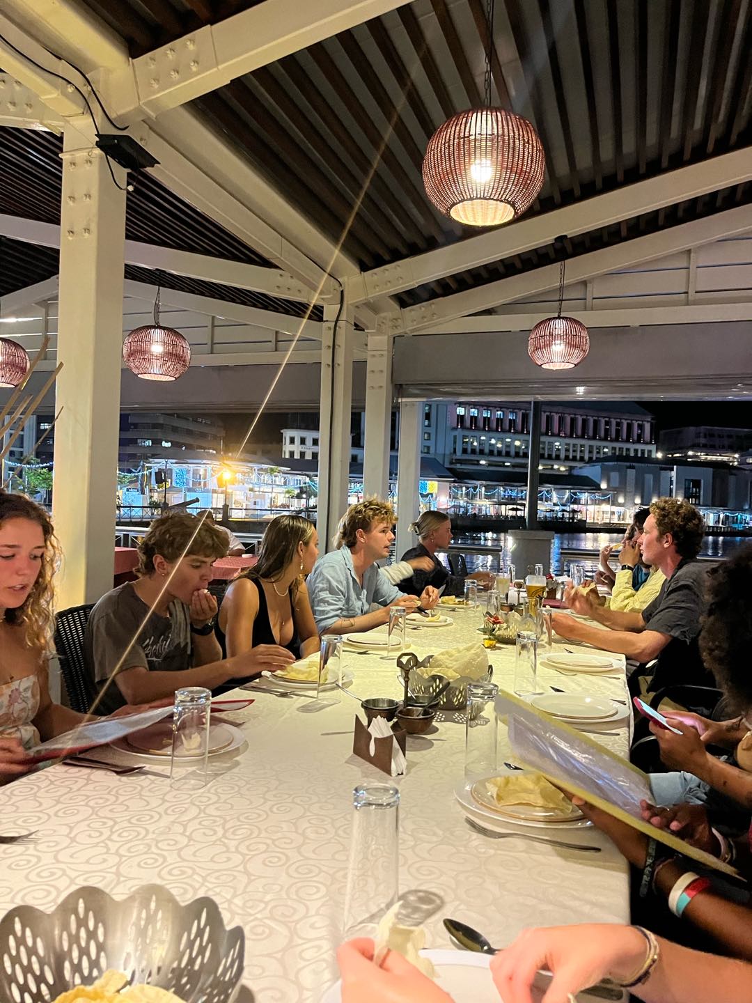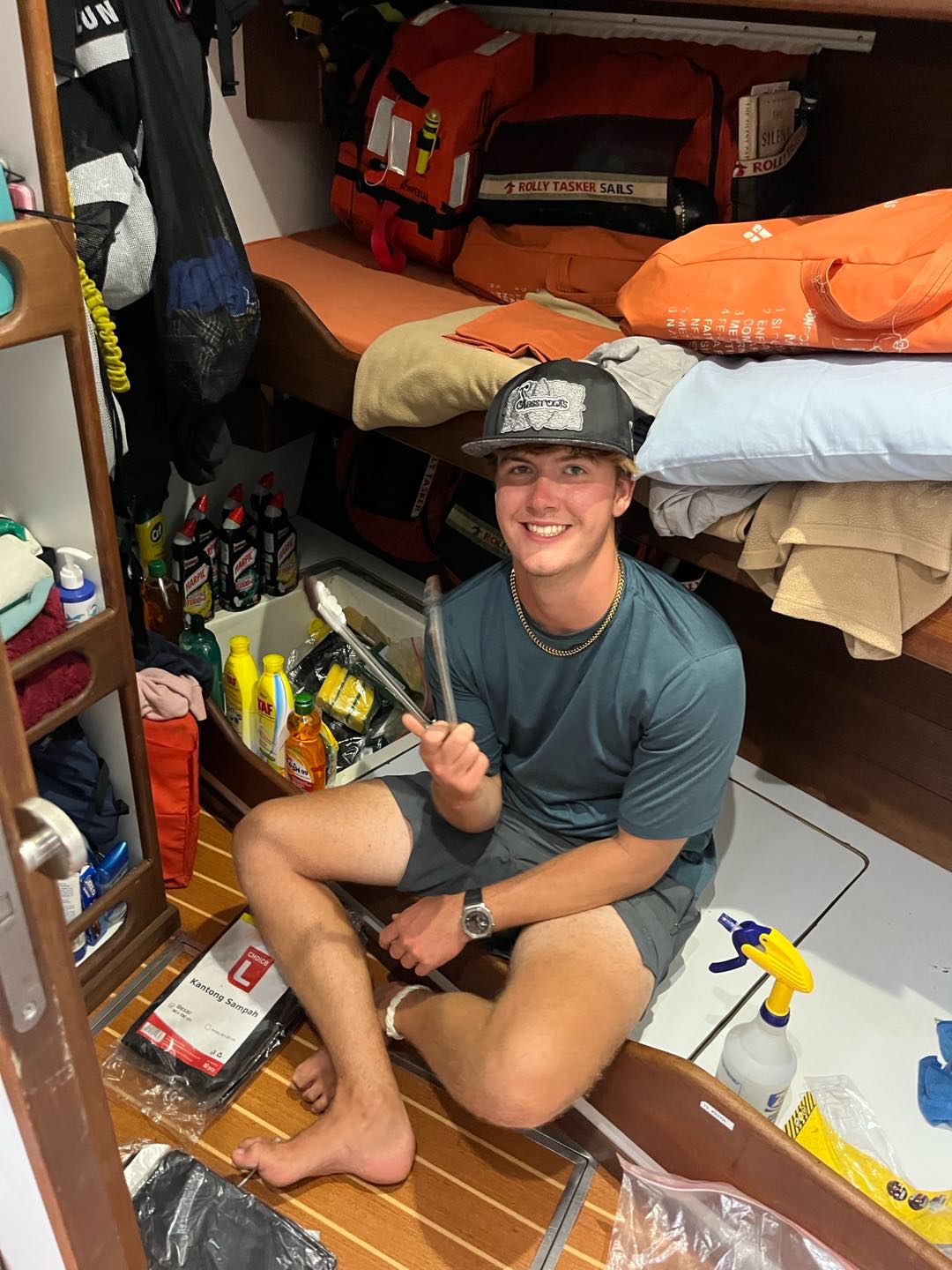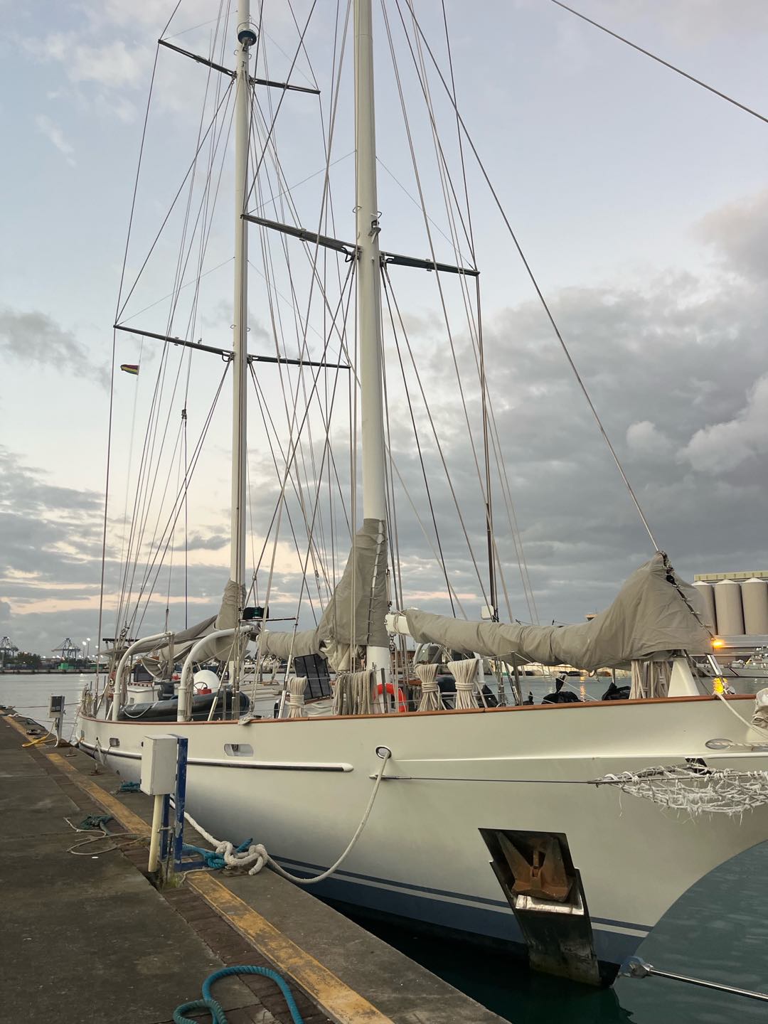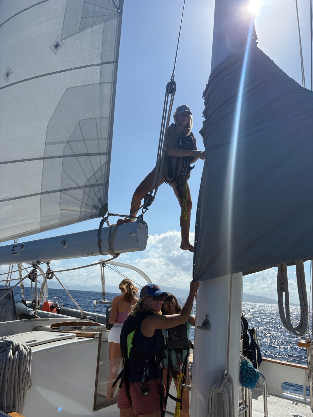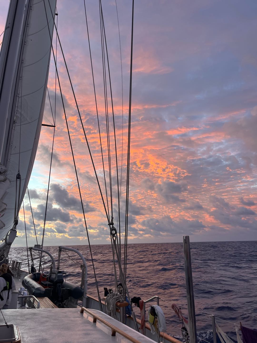 Felt like Christmas day without being in Christmas. The day has come, these 14 amazing days on passage have finally come to an end, and the petrichor was filling the air. Having the 8 to 12 watch was definitely a benefit this time with it being the last time watch team 1 is together which btw where the best, but besides that seeing the hilly peaks of Mauritius was a feeling like no other. The best way to describe it would be a fever dream that you never wanna wake up from, and the best part was that you are awake and it’s all real. Being on passage for 2 weeks, I definitely thought not seeing land would be harder, but having my watch team of Alice, Hannah, Keith, Henry, and Adda made the world of difference in surpassing and forgetting where I was or what day it was. As the time of 10 am hit, boat appreciation(BA) was in full swing. We weren’t letting the day pass us by, as we didn’t fully arrive till late noon, so getting an early start was in our best interest. Looking forward to our Indian food sign out. This was our fastest BA, giving everyone, and especially me, time to do my makeup and shower, but the other way around, you know, not in that order. Anyways, back to how BA went, it was literally perfect being able to walk up and down the companion way and feeling the difference in cleanliness. With being on deck duty, mainly Maia, Fin, and I put blue fuzzy cleaning gloves on our feet and went sliding; who said cleaning can’t be fun? I did actually before this trip.but now my perspective has changed, and cleaning is the most rewarding thing(yes, Mom, I’ll clean more at home). With BA coming to an end, touching land was a go. The leap of faith from the cap rail to the shore was so unreal. I felt like I was floating. Who knew being on solid ground could be so rewarding? Feeling cement on my feet and feeling the dirt build up on my feet was a feeling I thought I’d never miss. That being said, having on-shore bathrooms and showers was UNREAL. Everything about today was unreal. The only way to describe it. After all that, the walk to the Indian restaurant has begun, hoping, skipping, jumping, and galloping over the best feeling ever.