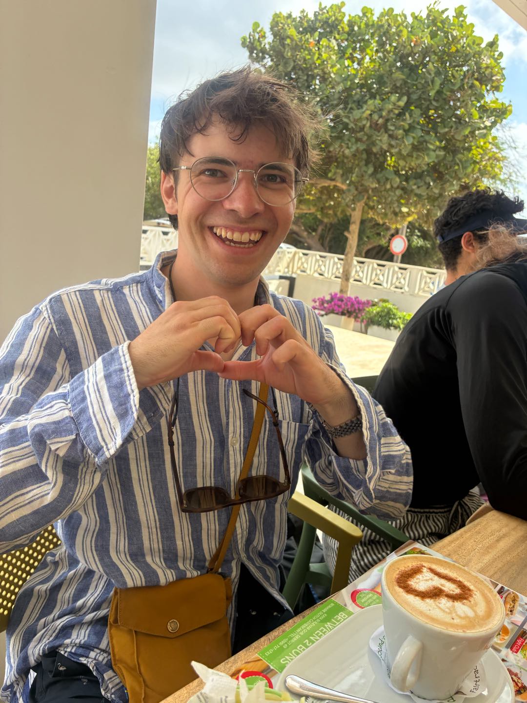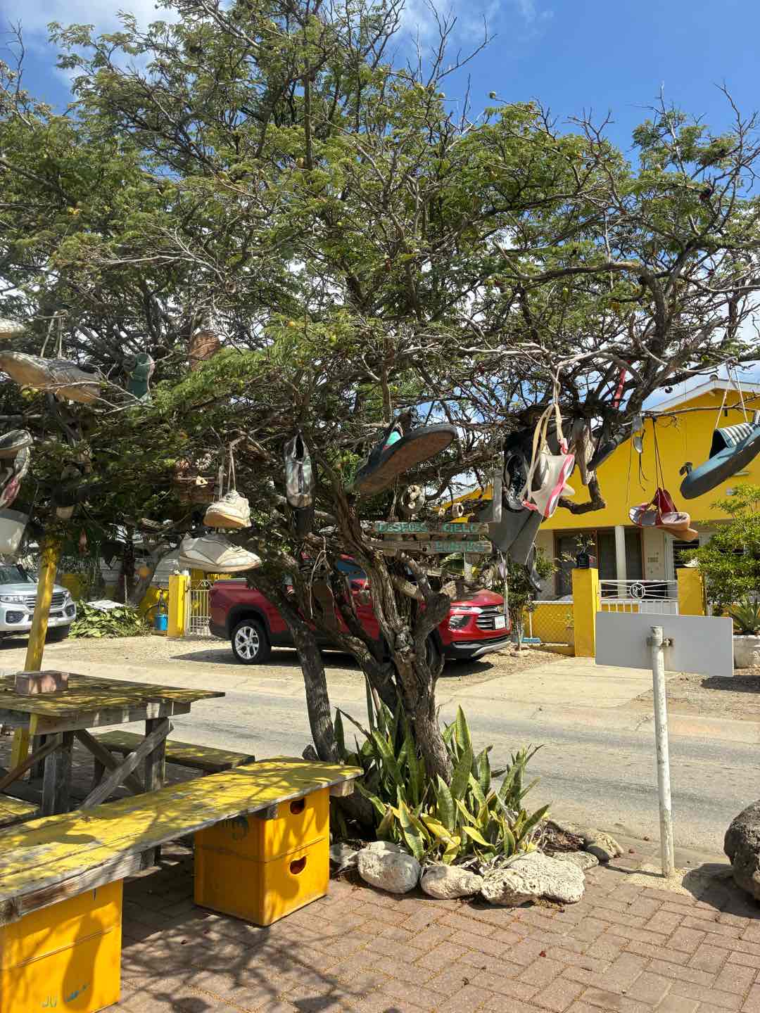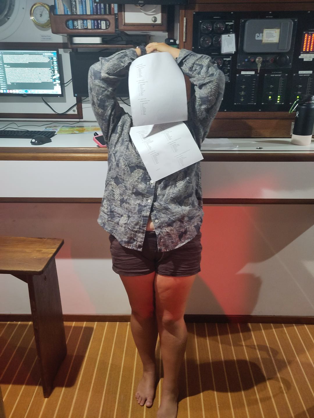 Hi Blog. My day today started at 8 pm yesterday. Watch team 2 was in charge of taking in the sails, and Gavi and I got to sit on the bowsprit to flake the jib. It was gusting about 25 knots, and we were going so fast, it was amazing. While we were out on the bowsprit, we looked below us and saw bioluminescence sparkling under the bow, and it was so magical. After the excitement of putting away the sails, we sat with anticipation, looking at the lights of Bonaire. When I woke up again in the morning, we prepared the deck lines for our wonderful dock spot. We have showers, a private beach, and a patio. After getting tied up, we stretched our legs on the trek to the customs office to get checked in. Then, after catching up with our friends and family after a week, we headed over to the dive shop to get buoyancy checks to be able to dive here. On our way back, the day got reeeeeaaaaallllyyyy exciting I found new watch straps!!!!!!!!!! You may remember in an earlier blog when Rachel rescued my watch from the bottom of the ocean, and now, with a new strap, that is the last time my watch ends up at the bottom of the ocean. After that, we headed over to Within 2 Buns, where Charles and Martin almost got us kicked out for jumping the fence when, in fact, Martin had just passed his shoes over the fence to Charles, who had previously been walking around shoeless. The Bun place ended up being delicious. Sydney and I both got amazing smoothies and a chicken sandwich. After some fire food, Sydney, Katie, Helena, and I went snorkeling and saw some crazy stuff. We saw a peacock flounder, giant parrotfish, a spotted moray eel, and lots of other cool stuff near our boat.