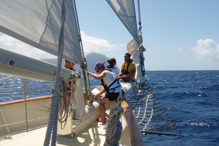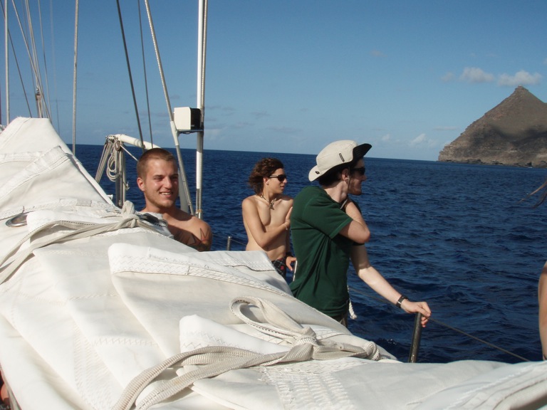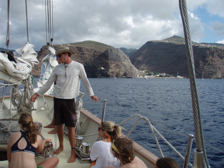 Land Ho! These words were yelled across Argo’s deck this morning. It had been 11 days since we had last seen the land, and everyone was anxious and excited to better glimpse one of the most remote islands on our planet. For the first time since leaving Cape Town, we took down and flaked all the sails and learned how to drop anchor. St. Helena is certainly the most unique island most of the crew has ever seen; less than ten miles long, this volcanic landscape is home to roughly 5000 people. After dinner, the crew and students completed our first “boat appreciated,” during which we scrubbed Argo’s deck and down below until she shone. Tonight will be our first night of anchor watches, and tomorrow, we will head ashore to explore St. Helena and all the island has to offer.
