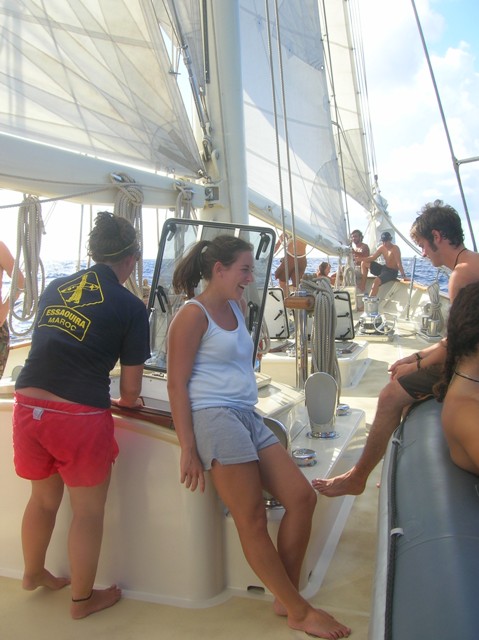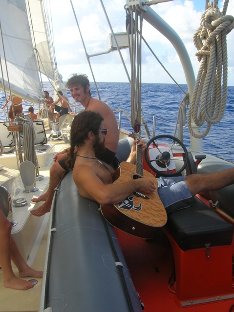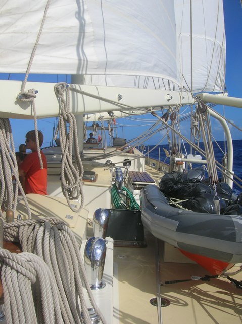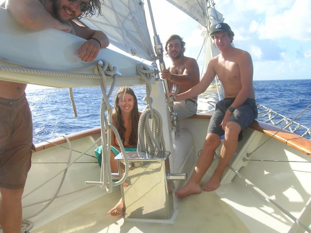 296 hours after leaving our friends in Cape Verde, the crew of the Argo sighted land. At 22:47, a “land-ho” was sounded by the ever-attentive bow watch, setting off a celebration that would last until daybreak. The winner of the estimation for the time of first sight of land was the expert mathematician Rachel, who calculated almost to the second when we would see the beautiful sight of a Martinique lighthouse. We were welcomed to the Caribbean Sea by a pod of dolphins who played off the bow multiple times today. Tomorrow, we will make landfall.