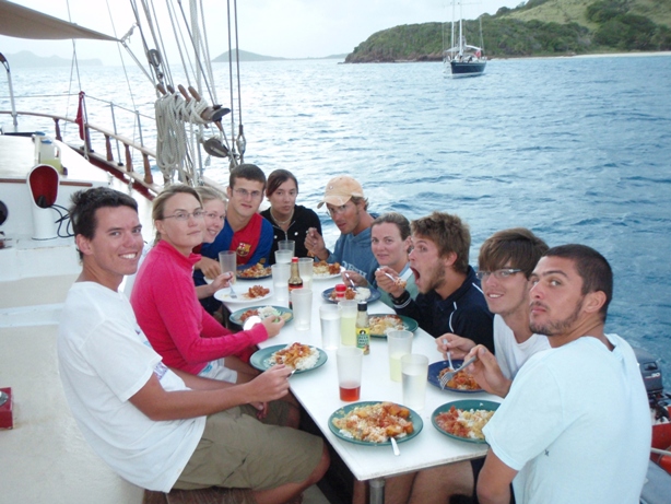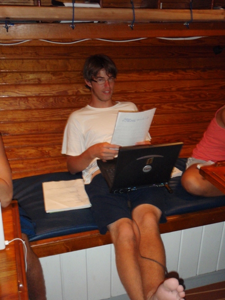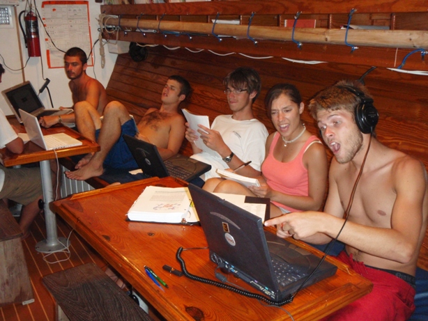 Large rain squalls woke some of us up at 0400 and again at 0630, and that set the tone for the morning, but it was a welcome change from the tropical sun. The crew continued to pursue the Adventure dive art with a navigation skills dive while Dan and Adam were in the beginning stages of their Divemaster course. The rest of the day was spent in class, Nautical Science and Oceanography, catching up on homework, and squeezing for some time to explore the islands around us. Tomorrow, we will sail over to Mayreau, so the crew is preparing the boat to sail.