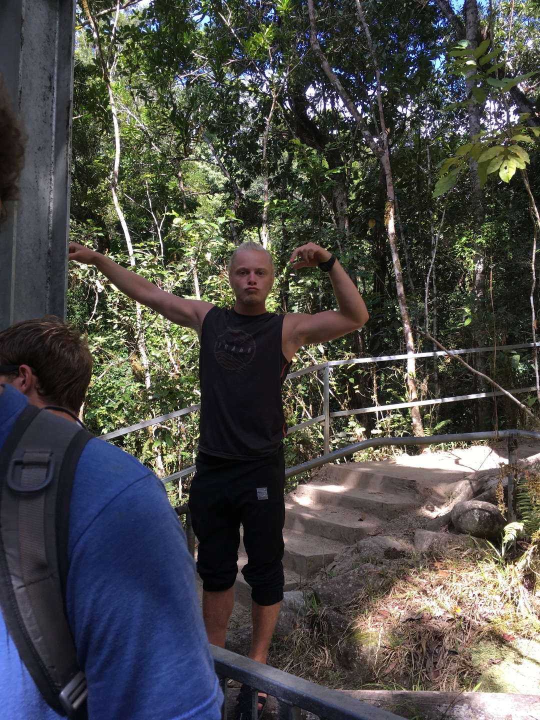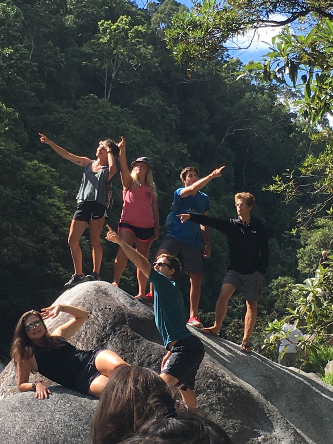 Others went to get some nice breakfast or coffee, and even looked for souvenirs. Our short time in Port Douglas ended, and we boarded the bus again to Mossman Gorge. We arrived and took another bus to the gorge, where we walked some trails, swam in the river, and went on a hanging bridge that made me a little nervous, but others found it fun to jump on and swing around. You may get the pattern. We quickly returned to the bus and started toward the Daintree Rainforest. We got to the river to take the ferry across the Daintree River and received our warnings of the dangers of saltwater crocodiles and how they are known to attack people. No one got bitten – dont worry. We crossed the river, then had a nice, long drive through the rainforest, which was probably my favorite part of the day. It was just so peaceful to sit down and appreciate all the nature flying by us. We eventually reached a nice beach where we were able to get lunch. A bunch of us went and played some beach volleyball and soccer, while others tanned and just chilled out on the beach. Again, we quickly had to get back on the bus and depart back to the river, where we had a crocodile spotting boat ride. We saw two crocodiles, some awesome birds, and even snakes hanging in the trees. After the river cruise, we got back on the bus and headed home to Argo. Carolyn had already made our food for us, so we sent everything up and fed a hungry crew. This is our final night with Jim, and we gave him a huge thank you for all he has done for us, especially for sharing his amazing stories and life knowledge with us. Today was an amazing day full of some of the most positive attitudes I have ever seen on this trip, and although we all would have liked to stay at some of the locations today longer, it was so much fun, and I think we all had a fantastic time.