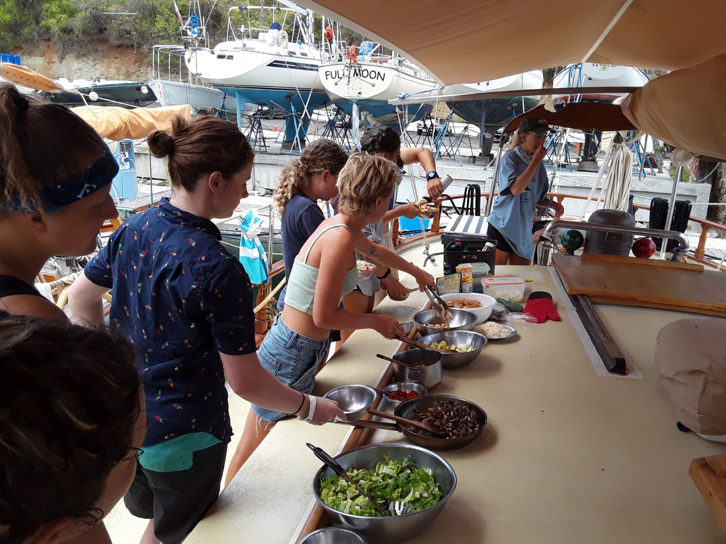 Today was the last full day of our trip, and there were a lot of different emotions aboard Ocean Star. We were all excited to do our BA (Boat Appreciation) quickly so we could have some free time on shore before going out to dinner all together that night. Once we ate breakfast and cleaned all of that up, we started on our BA. Scrubbing every surface imaginable below deck, tables, floors, counters, ceiling, and bunks all got a good clean. We basically got it all done before lunch, which was pretty epic. It is great to know that we put in hard work so that Ocean Star is just as nice for the next group as she was for us when we came aboard her nineteen days ago.