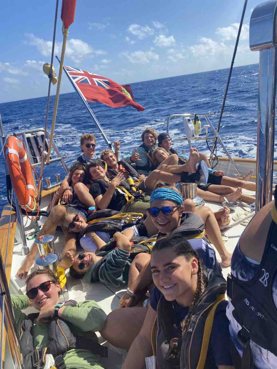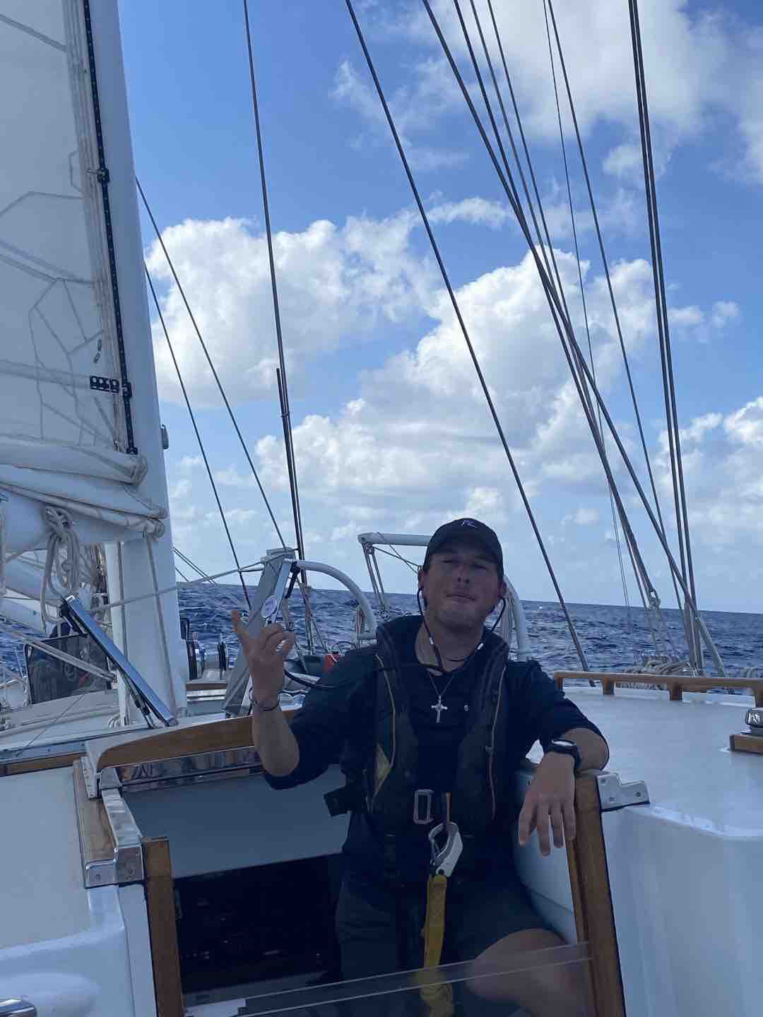 Today was our third day crossing the Atlantic. We are entering the groove and haze of passage life — I’m excited to see this group reap all of the benefits it has to offer, including the ability to become the wackiest and weirdest version of yourself (and then the challenge that follows of dialing that back in when you return to land). My day began with my and Sam’s watch team (watch team 2) emerging from the companionway at 4 am. We discussed how insane of a prospect it would be to sit down for four straight hours to do just about anything at home – let alone sit in a room with eight other people and only yourselves to entertain you. We then watched the early hours of the morning fly by thanks to many stories told, conspiracy theories shared, quantum physics explored, workouts attempted, and laughs abound. We collectively realized today marks only 29 days left in this trip, and with that realization, a feeling of sentimentality and nostalgia for our experience here, even as it is still unfolding before us, with many of our favorite memories still to be made.