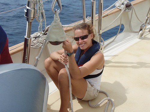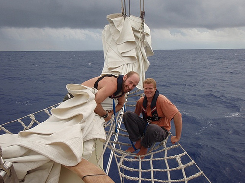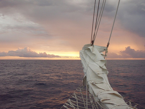 Today marked the last full day of passage for this journey. We had a beautiful day of sailing and actually had to try to slow down in order to have a daylight arrival in Tahiti. After staying up until the wee hours drawing sea creatures, our Marine Biology logbooks were finally turned in, marking the completion of the course. The science classes were combined, and we all watched “Air Jaws,” a documentary about great white sharks. After class, we saw the flukes of some whales off our port bow, and not too long after, we heard Teddy cry, “Land ho!” As our approach to Tahiti continued into the night, a storm surrounded us and filled the night sky with lightning. It was a little reminder that we’re not there yet, and we still have to be on top of our game to arrive in Tahiti safely in the morning.