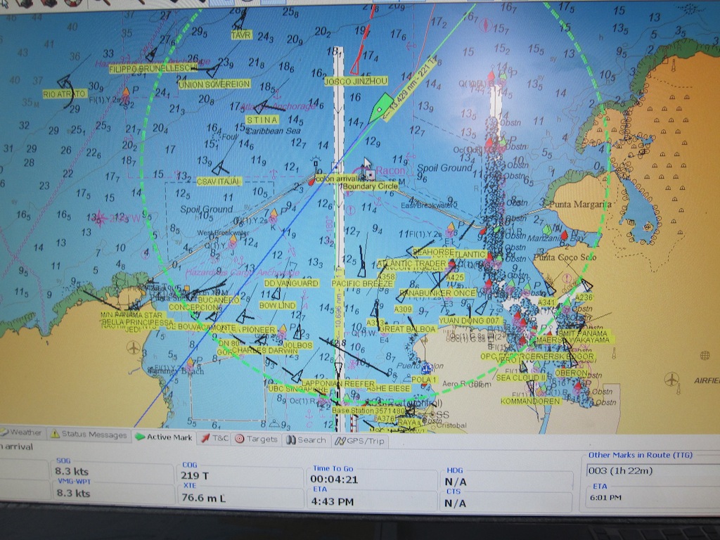 I know I speak on behalf of everyone when I say that I would have been pleased as pie to spend more time in the little slice of untouched paradise known as the San Blas Islands. In a part of the world where no cars or airplanes go — because an entire island is the size of some backyards — we experienced beautifully handcrafted molas created by the interesting and friendly Kuna people (one of the last truly preserved indigenous cultures), swinging from the boat’s boom into perfectly warm, turquoise waters, and an Argo family BBQ. Some of us would have been happy never to leave. Alas, we were all up and on deck for a yawn-inducing 4 am departure. Sleepy-eyed, we pulled up our anchor and motored off into the darkness, knowing that we were leaving a very special place but that many more great adventures were still ahead of us. Our passage was a quick one, only about 12 hours in total. However, we still enjoyed a few of the unique familiarities only a passage can offer: A huge bowl of cereal at sunrise (something we all look forward to like nothing else), some interesting bow-watch conversations, and, yes, a few moments of nausea. After curry chicken for lunch and a couple of classes, we were surrounded by dozens of huge cargo ships, signaling our near arrival to Colon, Panama. Maneuvering through a narrow passage to the dock, we found the draught of Argo caught up on the muddy bottom and were apparently worthy of spectators and videotaping as we lollygagged (all 20 of us plus four staff members running back and forth across the boat in unison) to free her. Although I’m sure we looked rather silly to the rest of the dock, I am personally satisfied with the humor and enjoyment we all got out of the incident. Now that we’re no longer in our own little world, it’s back to the internet, coffee, and ice cream sundaes from restaurants for us while we spend the next few days waiting for the OK to cross through the Panama Canal.