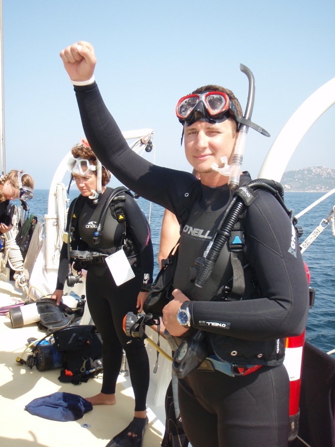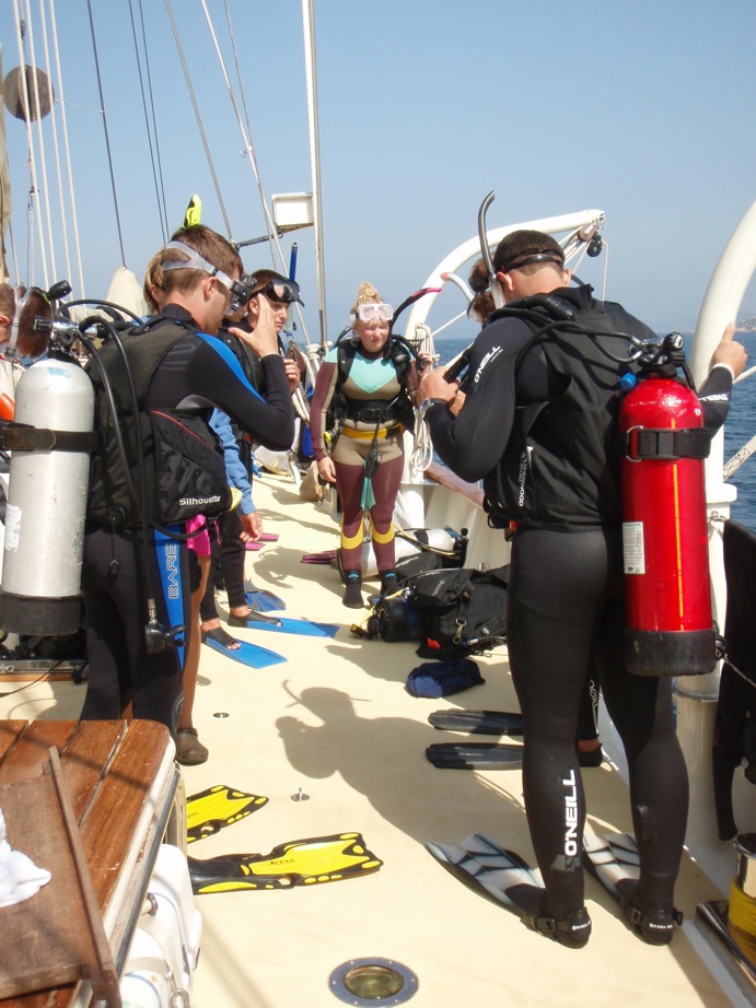 Like most people, I regard Sunday as a holy day, not religiously, but as a day when everything moves a little slower. No one cares on Sunday if you want just to read a book all day, watch YouTube videos for hours, or walk around in your underwear until 4 pm. But on the Argo, things are a little different. My lazy Sunday began at 6:45 to the sound of Sam, Britt, and Elizabeth furiously trying to make enough pancakes to feed 30 mouths. After just over a week, it feels like nothing out of the ordinary to walk up onto the deck and find not only a beautiful sunrise but the avid cameraman capturing time-lapse shots of it with a Go Pro. One thing that I had yet experienced was the skipper’s role of waking everyone up, a privilege I took full advantage of this morning. Some jump out of bed with smiles to greet the day, while some give me a thumbs up and quickly fall back asleep. The Sunday ahead of us consisted of scuba classes, where we went deeper than ever before. After last night’s introduction to Marine Biology and Oceanography, I found a new excitement associated with exploring the depths below us. After my group was finished scuba diving, I allowed myself to slip back into my Sunday mindset, tanning on the bowsprit, doing dives off the beam, and playing cards in the galley. Today is our last in Porto Pollo, as we leave tomorrow morning for Bonifacio, providing more evidence to my theory that, no matter where we leave from, the next port will have an even more exciting name.