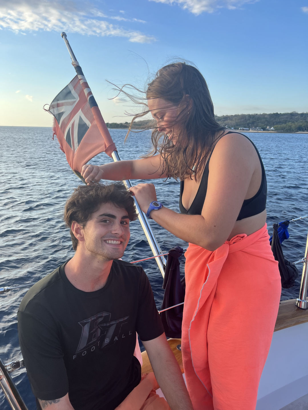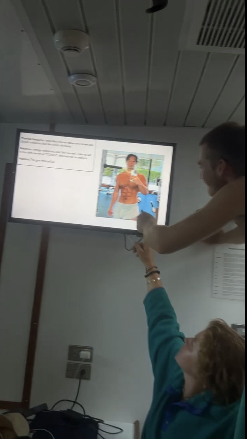 Today has been a beautiful and melancholy day. We had a few of our first lasts, finished up the majority of our school work, and started writing our little cards to each other to express the appreciation, admiration, and love we have built for one another over these last 74 days. After a morning of oceanography exam and passage prep and an afternoon of class and schoolwork, we all jumped in the ocean (adorned with jellyfish) for our last ocean swims off of Vela. Ocean swims have become something so precious to me on this trip, a way to have my body move and feel weightless and free without all the sweat of moving around on the boat, so I definitely felt a little pang in my heart to know that today was the last time I will do a wonky little backflip off of Vela’s bowsprit. In the spirit of firsts and lasts, Margaret re-attempted her first backflip off the bowsprit and got super close (She did a little spin with a shriek), and Emma conquered her fear of heights and jumped off twice! After a final ocean shower, we all dried off and scampered down to the salon for our last species ID quiz for Marine Bio… and a surprise 6th species ID quiz where the species in need of identification were all of Sydney’s boyfriends! This was actually one of the most hilarious things I have ever seen. We had Sydney’s whole roster of boys up, with key ID features and hints to all of the funny stories Syd has shared with us about them over this trip. It was a marvel to behold. We all have favorites. Mine personally is Billy (New Zealand racecar driver who says NYOOOM when he drives the cars. Awesome)… I’m rooting for you!