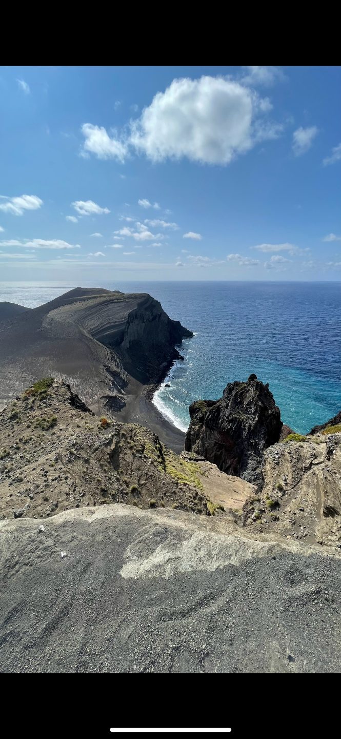 I’ve included a map of the island we are currently at. We are docked at the Horta Marina. The leftmost point on the map is a lighthouse, reconstructed since the damage sustained in the last volcanic eruption. Several others and I took the liberty of visiting. The cliffs were quite dramatic, sheer drops topped in volcanic ash. The lava rock is quite literally everywhere. It makes up the entirety of the ground composition. Below the lighthouse, we found a small caf in a concrete environment more resonate than maybe anywhere I’ve ever experienced. This was the reconstructed lighthouse’s foundation.