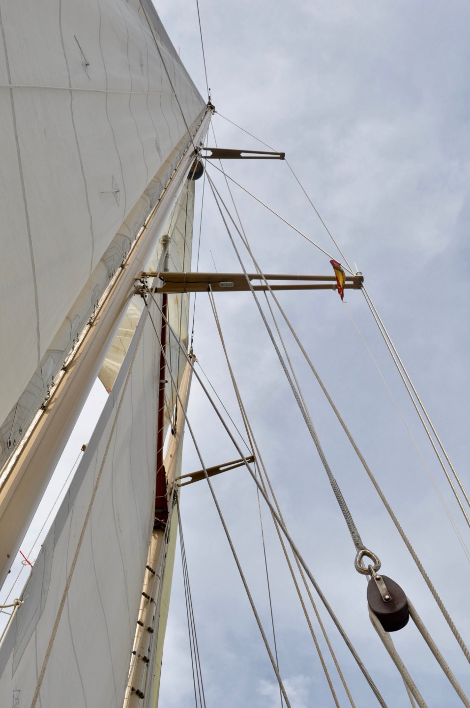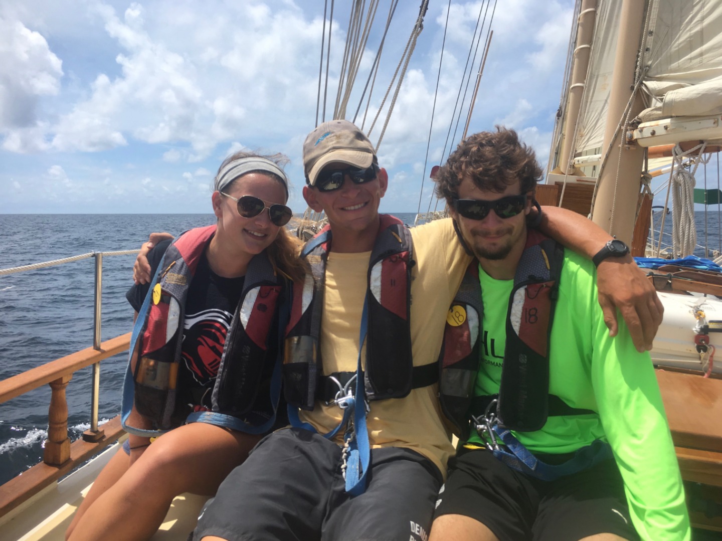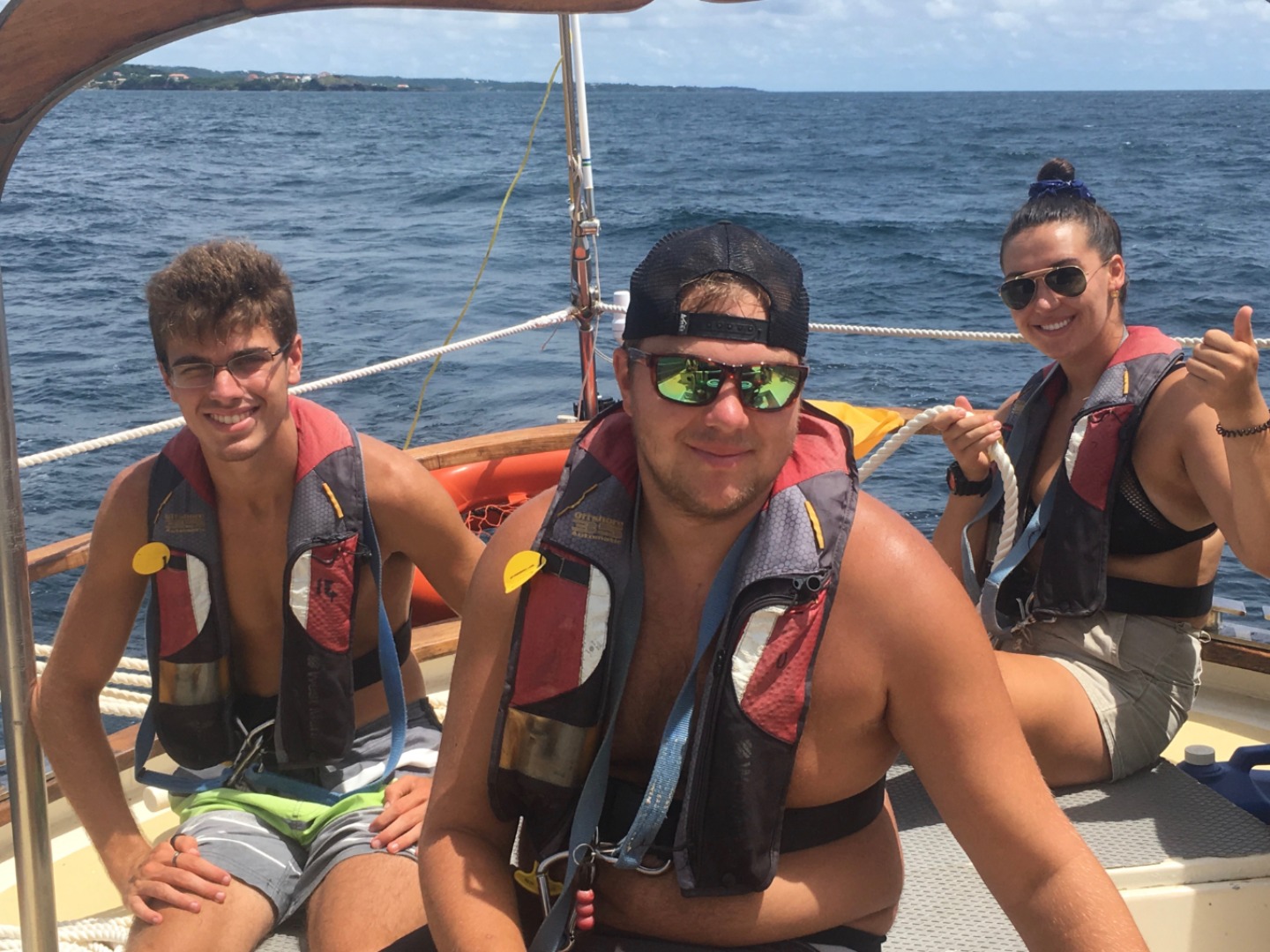 We struck the flying jib and donned our foul-weather gear. As we inched closer to the dark grey line of clouds, they began to dissipate, and by the time we arrived at our anchorage for the evening in Tyrrel Bay, Carriacou, the rain was not more than a drizzle. We dropped hook after dinner, then jumped down below to watch “Vanishing Sail” by Alexis Andrews. Mr. Andrews lives in Antigua and has been sailing Carriacou-built sloops for years. He decided to make a documentary about the dying tradition to help inspire others to carry it on, or at the very least, to document the last of the Carriacou boat builders. Tomorrow we will get to see the boats being built. It will be exciting.