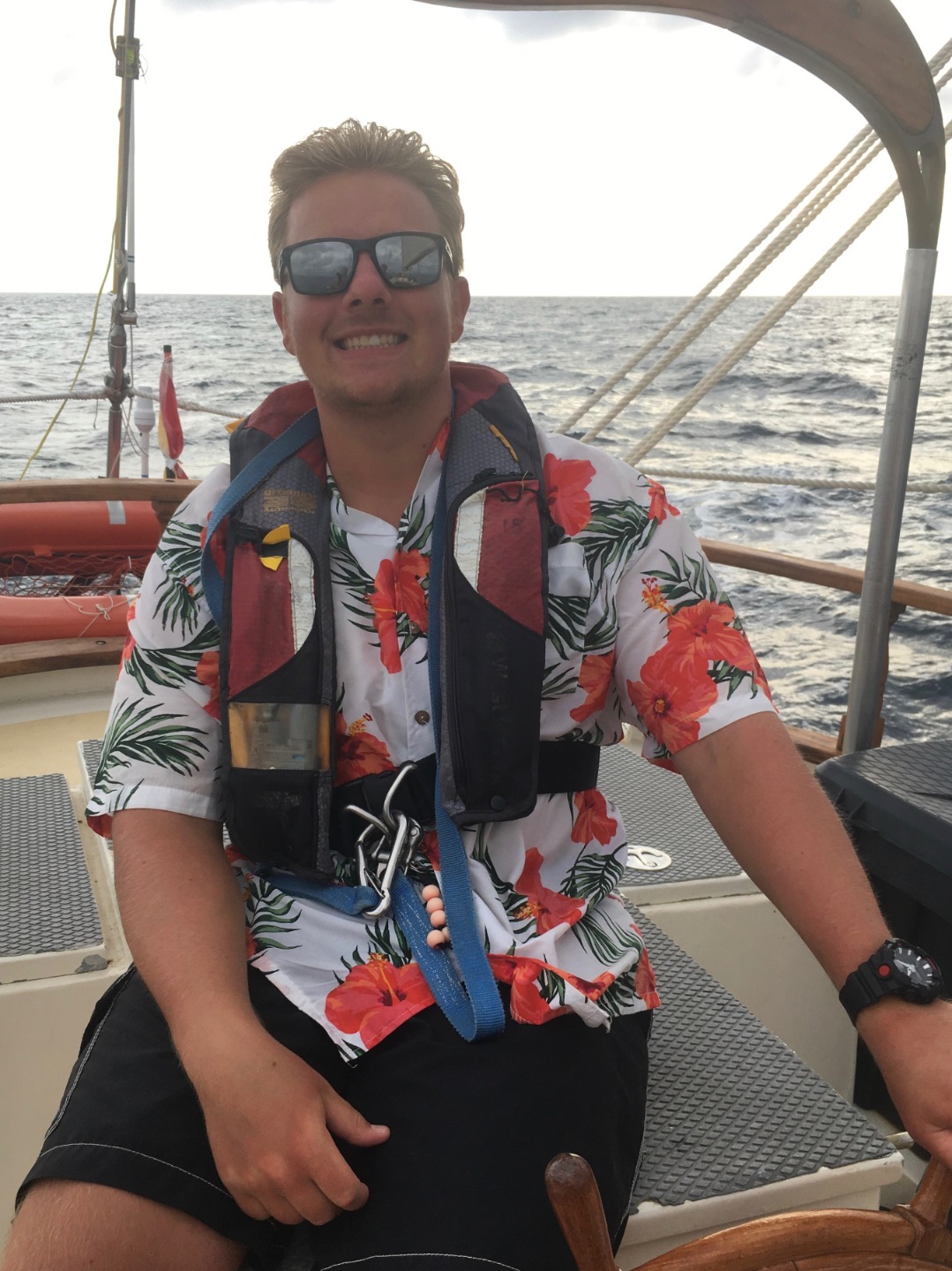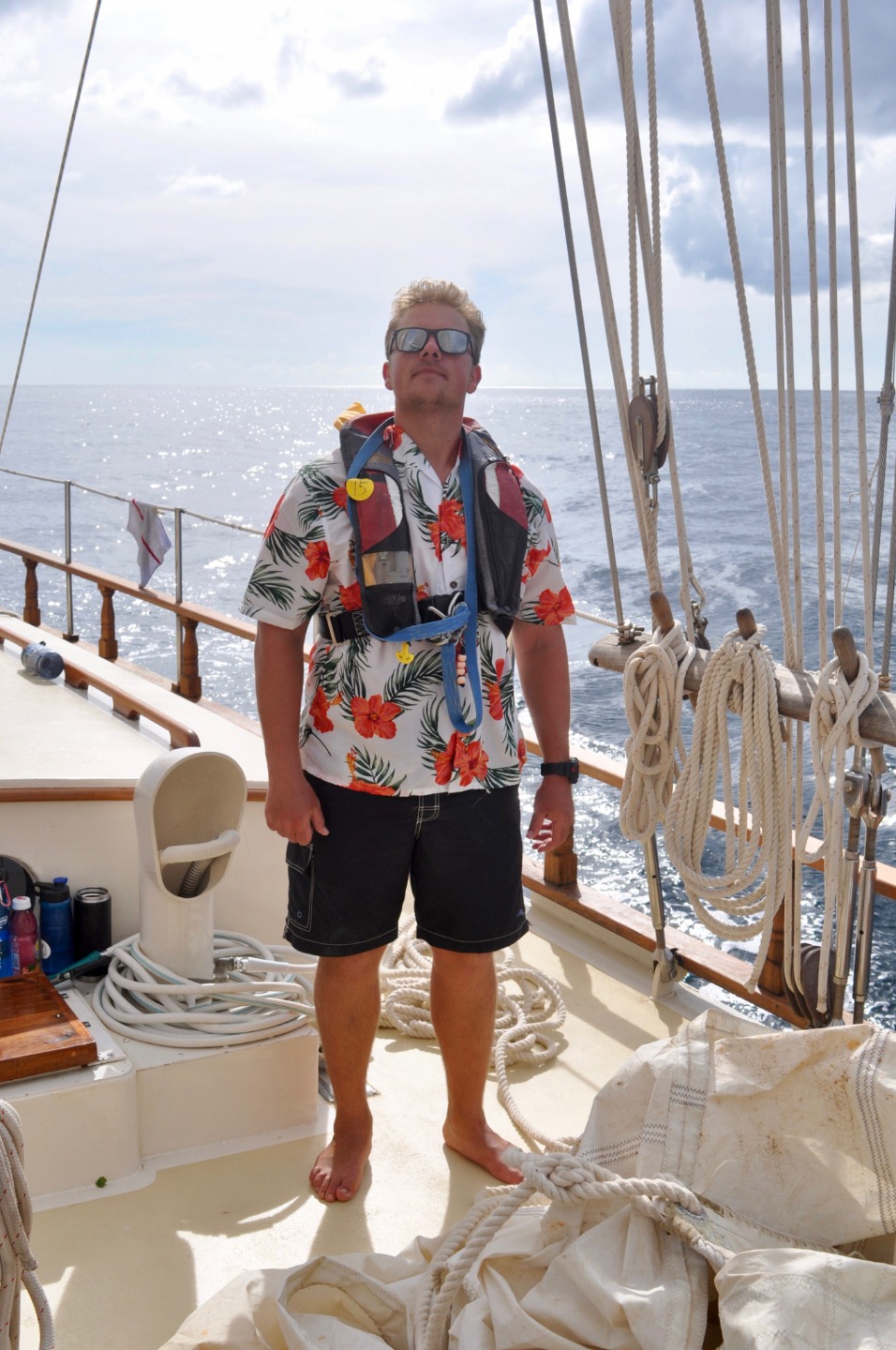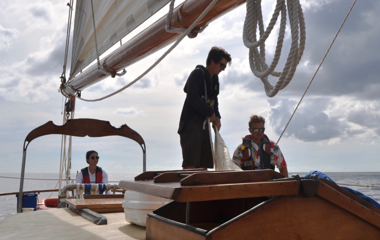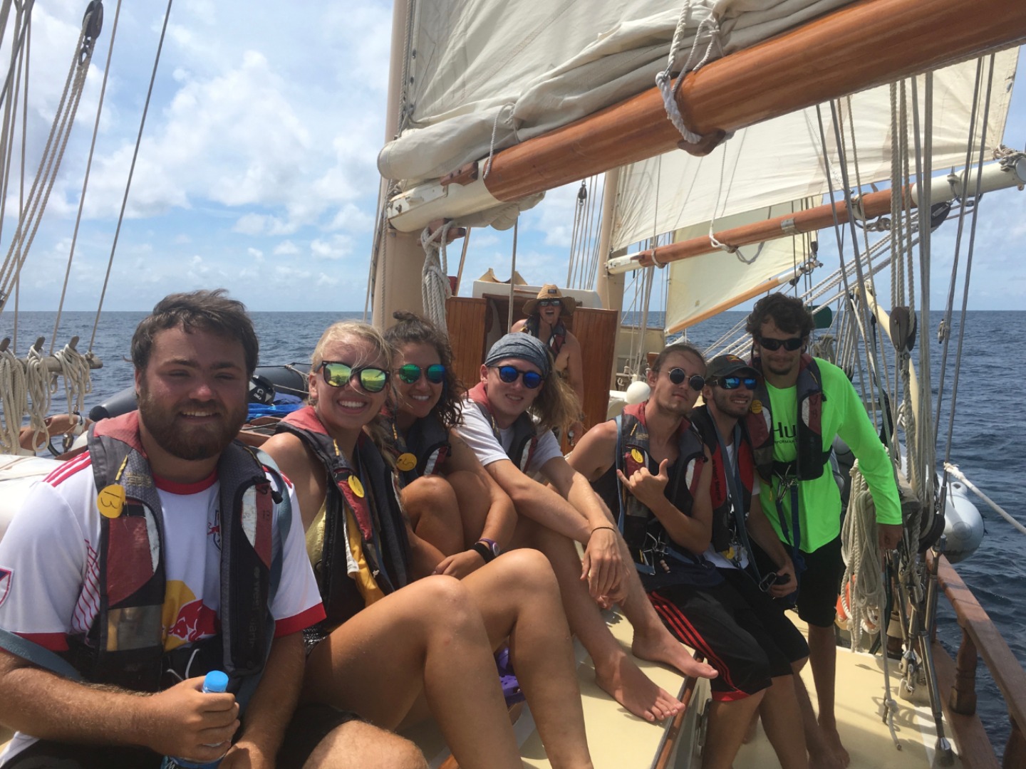 We struck the flying jib and donned our foul-weather gear. As we inched closer to the dark grey line of clouds, they began to dissipate, and by the time we arrived at our anchorage for the evening in Tyrrel Bay, Carriacou, the rain was not more than a drizzle. We dropped hook after dinner, then jumped down below to watch “Vanishing Sail” by Alexis Andrews. Mr. Andrews lives in Antigua and has been sailing Carriacou-built sloops for years. He decided to make a documentary about the dying tradition to help inspire others to carry it on, or at the very least, to document the last of the Carriacou boat builders. Tomorrow we will get to see the boats being built. It will be exciting.