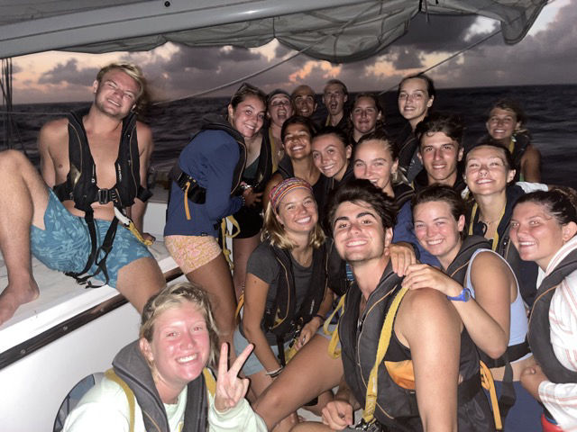 Yeah, of course, most of you know how awesome and dope the ocean is, and I know your loved ones hype it up every time they get to talk to you, but that’s because IT IS! So far on this trip, I have been blessed with the opportunity to see dolphins streamlining in bioluminescence, a major grouper spawning event in Palau, super healthy coral reefs with limited damage, a squid inking away in the UV light during a night dive, flying fish that fall into people’s cabins, giant schools of fish broken up by the presence of a shark, and even Nemo in his anemone! But, outside of the obviously cool things, I’ve spent hours and hours gazing out at the sea and still cannot fathom its expansiveness. In marine bio, we’ve learned many cool things about all the life inside the ocean, and in oceanography, we learned a lot about what allows for this life. I feel like I’ve learned so much more about the ocean, yet with everything I learn, the more I feel like I don’t know anything. The ocean is diverse and beautiful and, at this point, has become a home. No matter where I go, I’ll always have a piece of the ocean in my heart.