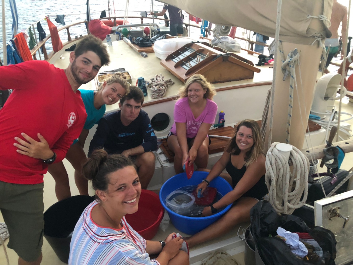 After that, an initial clean-up process of the boat began with clearing our cubbies and washing our dive gear, as well as starting to put away all our personal belongings.