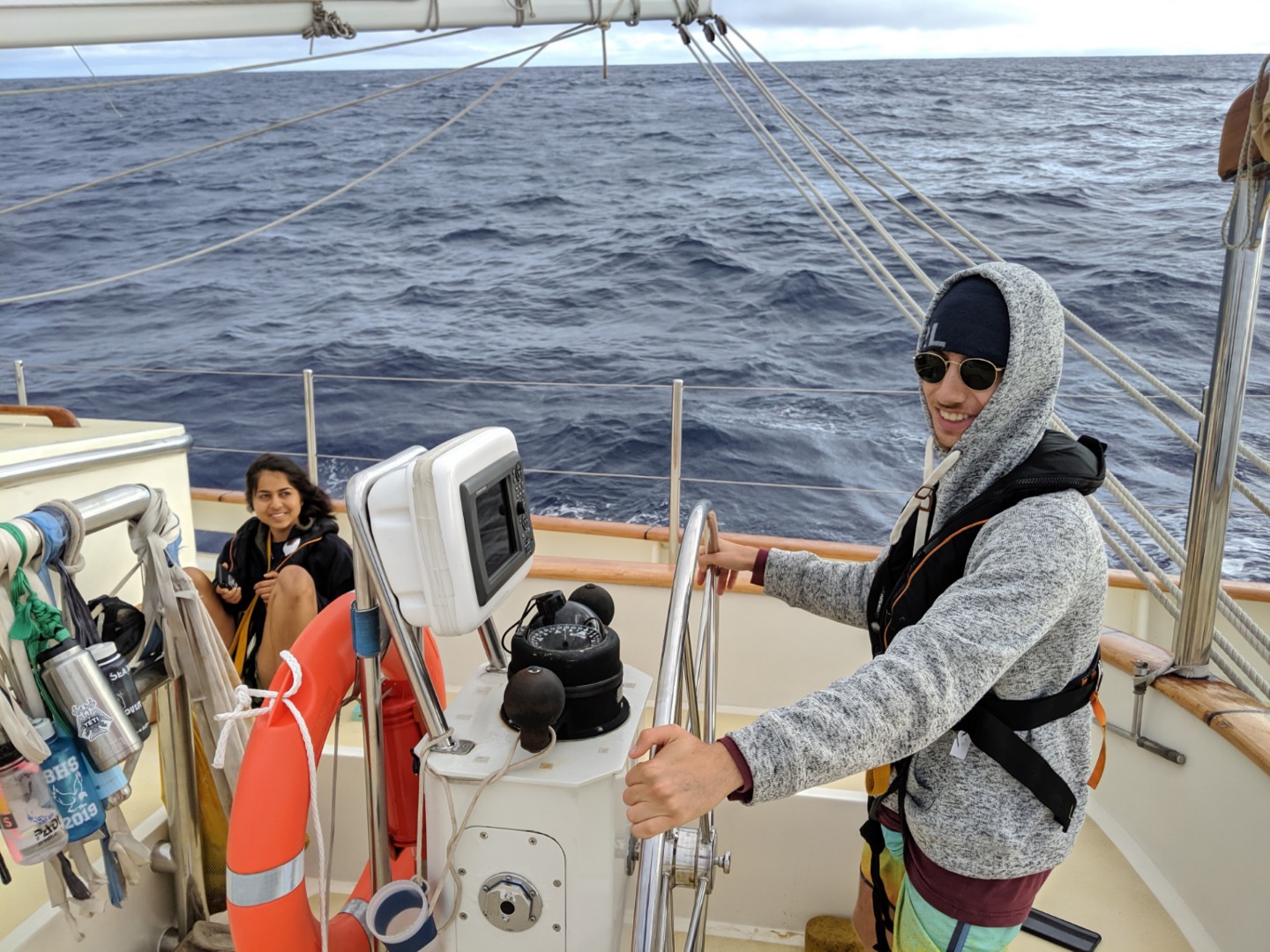 Today was day three of the four-day passage from Fiji to Vanuatu, and it was a really good day. For the past few days, most of the students onboard Argo have been stressing about balancing homework, watch, chores, and sleep. The most common phrase on the boat at this point is “SLEEP IS FOR THE WEAK!!!!!”… which is commonly followed up by students frantically looking for a source of caffeine. Even with the mass levels of sleep deprivation, everyone is trying to keep a positive attitude so that we can all enjoy our time together out here. More than anything, it’s the strange yet funny moments that keep the morale up. For example, last night, around three in the morning, Argo got a surprise visitor. A rough bird and his leftover sashimi (squid) dropped on the deck for a rest and to offer some of his food to us. Watch team three welcomed the bird and looked after him for the next hour and a half and left him as a gift for watch teams one and two. Waking up to the bird and having him hang out until almost 9 am brought so much joy to each person and really made the day feel so much brighter more than anything watching the bird fly away really meant something to each of the crew.