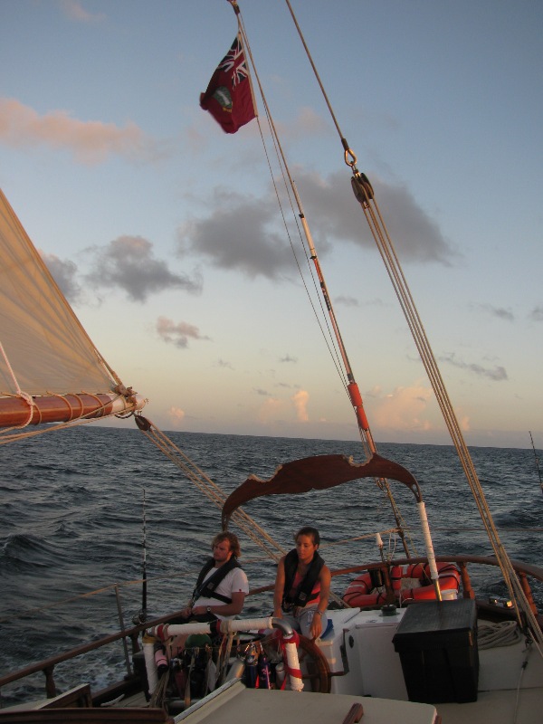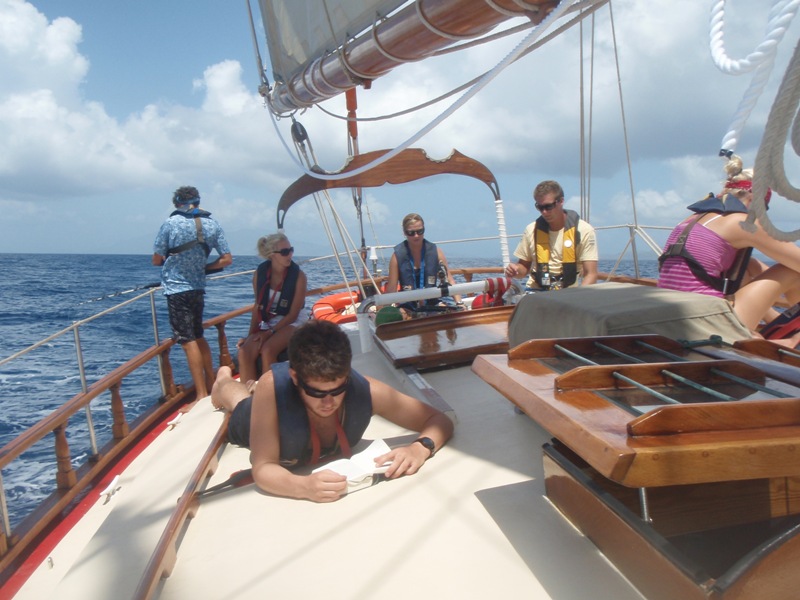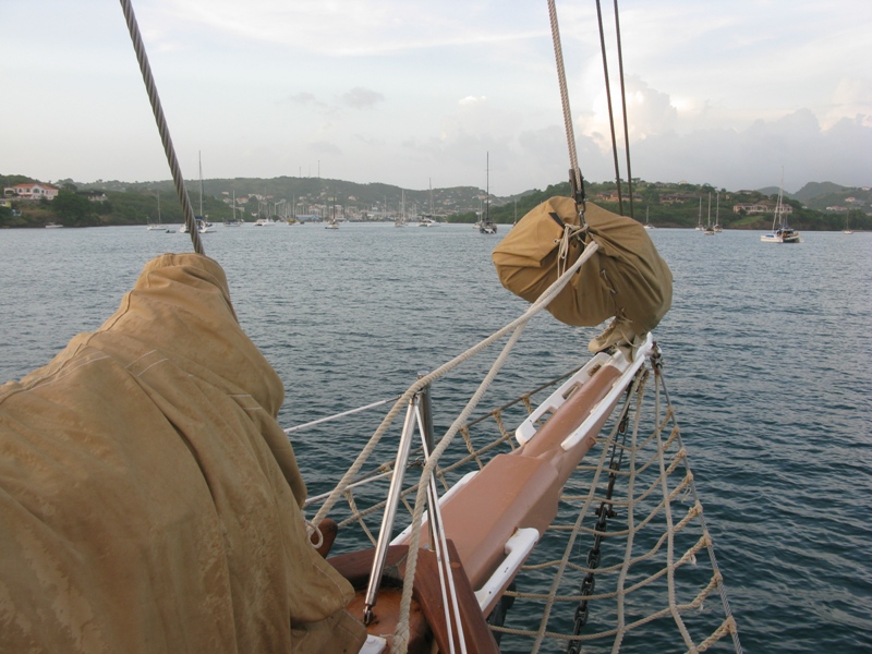 Our routine has set in well, and the crew has been getting used to life at sea and truly living in the present, three hours at a time. The day brought a beautiful sunrise and a surprise appearance by a group of large Sperm Whales! Watch team three had the pleasure of seeing these magnificent mammals just thirty feet from the boat. As I walked on deck to prepare for my upcoming watch, I spotted the distant hills of Grenada on the Horizon. A welcome breeze kicked in and gave us our hard-working engine and deserved rest. Under sail, Ocean Star came to life and showed the crew her true colors. She took off gracefully, piercing through the oncoming swell. We pulled into Prickly Bay, on the southernmost tip of the island, and dropped anchor with all the otherworldly cruisers. The crew showed Ocean Star’s appreciation for safe passage by cleaning her up and getting all the rust stains off her decks. Dinner was served, and the crew enjoyed a much-deserved night out. Kevin, OUT.