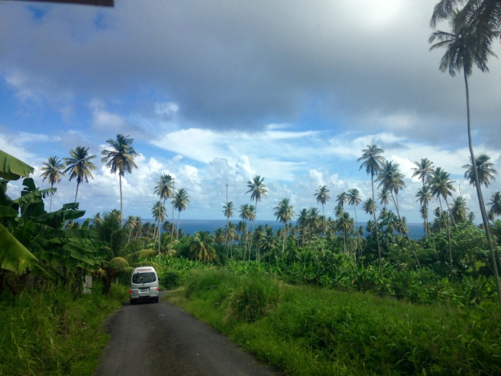 We started off this morning with an earlier-than-normal wake-up, but with good reason – we needed to get to the northern part of the island to be able to hike to La Soufriere, an active volcano (last erupted in 1979) and the highest peak on the island of St. Vincent. Everyone was excited and got ready super quickly – we made it to shore just after seven and jumped into two large taxis to head north. I loved the drive, as we got to go through several small towns, past some fields of coconut trees (my favorite), and hugged the beautiful coast for most of the ride.