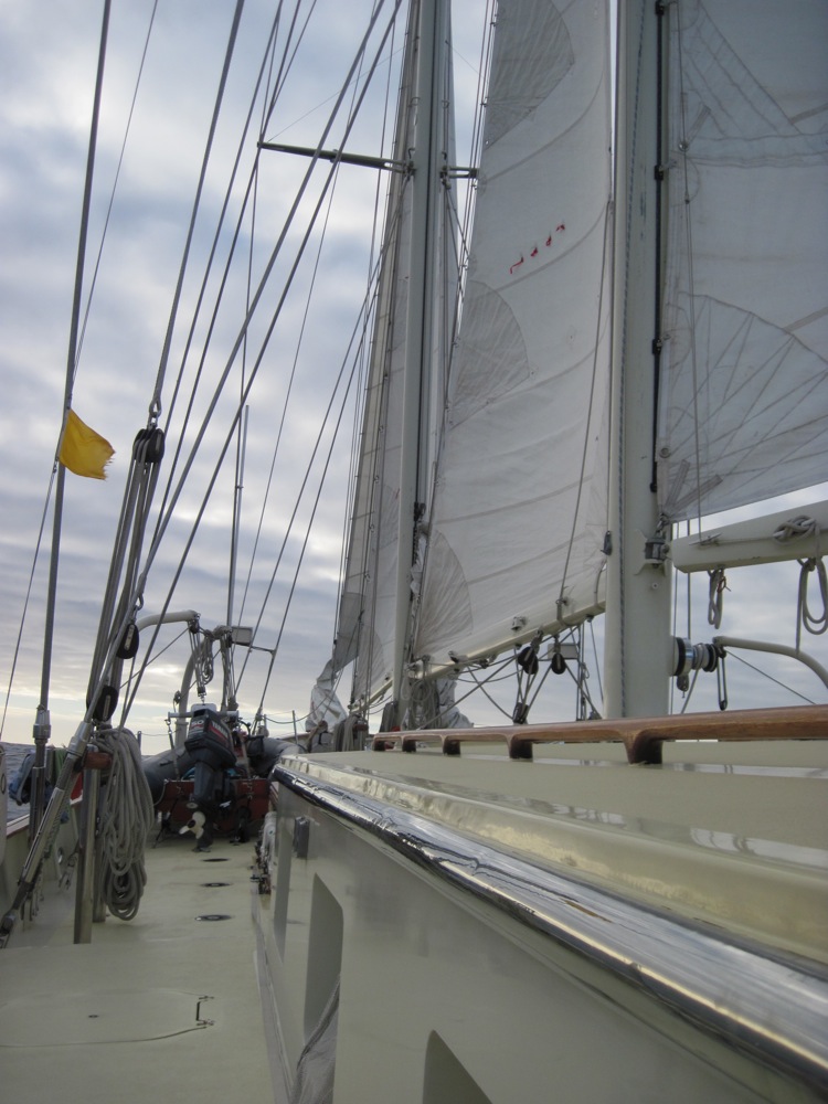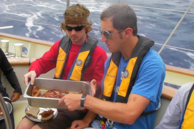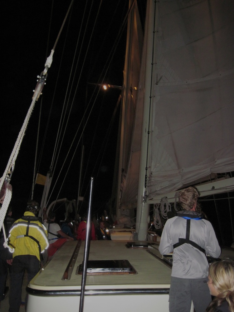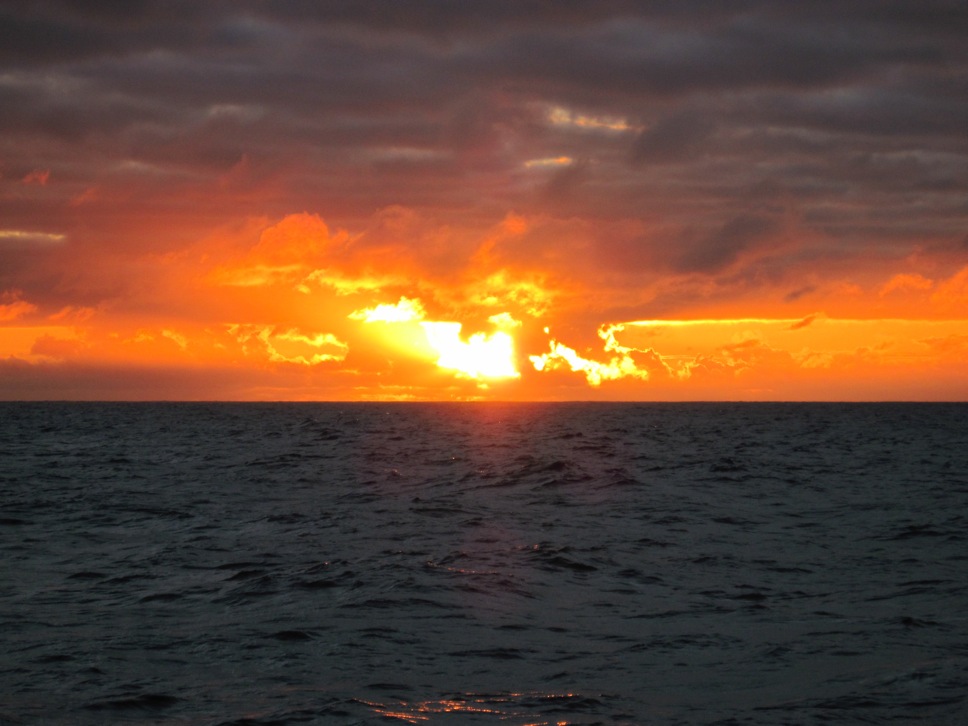Today was another great day at sea, which started off in the early hours of 00:00-3:00 for watch. In this particular watch, we did not see any boat traffic, but we did have plenty of flying fish to pick up off the deck of Argo. My watch team’s new goal is to get a sequence of pictures of a flying fish leaving the water. We have not had any luck yet. Our watch team has also started chatting about what St. Helena is going to be like. We have discussed everything from a colony of vampires to sky-rise buildings and robots. I guess we will just have to see in a week! Later on in the day, for lunch, we had a great meal of enchiladas made by the Chefs Brian and Stephanie. Following lunch, we had two classes, Marine Biology and Basic Seamanship. In sailing class, we learned to tie a variety of knots, and in Marine Biology, we learned about microorganisms. My brain is on overload from all the new information we have been learning, but it all has been so interesting, and I can’t wait to learn more! After classes finished, it was time to take showers, which were extremely cold but very refreshing. After showers, you could find people on watch, doing homework, or taking a nap before their next watch. Dinner was a great meal of potato curry, and it was followed by an amazing sunset. Life on Argo is becoming a natural routine, and everyone is enjoying being surrounded by 360 degrees of nothing but the ocean!