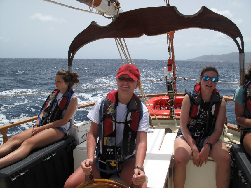 Late last night, we started on our second overnight passage to Antigua. The night was rough, with the tacks and jibes throwing some of us out of our bunks (me). However, this morning, we woke up to see beautiful, clear, sunny skies and a foggy outline of the land of Antigua. We were all super excited to finally have a few days to relax, hang out, and dock the boat, which means freshwater showers and flushing toilets. We arrived in Antigua a little later than expected, but still, the crew was eager to throw the lines to the dock and try to regain our land legs. For dinner, Kevin (the real Kevin) made us spaghetti with spicy marinara that was instantly scarfed down by everyone. Finally, we are ending a long, wavy day with a game of pirates on the dock and some knowledge reviews for the advanced open-water divers who are finishing a navigation dive tomorrow morning. Welcome to Antigua!
