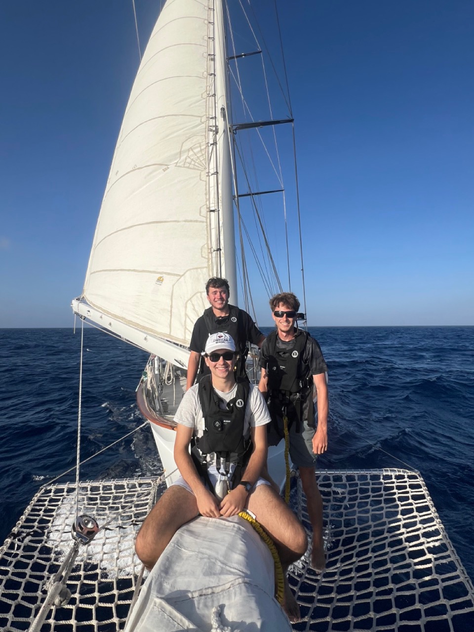 Greetings from day 100 at sea with no sight of land in any direction; it’s the very life of Pi but without any tigers. It’s actually only day 2 or 3 (it’s so hard to tell). Life on passage is starting to feel pretty natural. The morning personally started off with the 8-12 watch shift. Our new watch team one (Mich, Mac, Chloe, Ruby, Grace C, Watson, Eduardo, Brendan, Boston, and myself) had a dandy time raising a few of the sails and enjoying life without hearing the engine beneath us. It was so quiet (pretty cool (but maybe too quiet(where did all the people go (maybe the tiger ate them(This is Life of Pi)))). Mac taught us to use a tool called the sexton, which uses the sun to determine our position. At noon in Boston, Audrey and Tom cooked us a grilled chicken pesto sandwich for lunch. It was really good (this observation was taken from testimonials from chicken sandwich eaters). After lunch, everyone did their jobs, and then we all gathered in the salon for Marine Biology. It wasn’t really marine biology, though; it was just time for Ben to answer any questions we had about citations for papers. It took about 10 minutes (nothing to write home about). Then we split up into port and starboard to have seamanship class. We learned our final concept before we started reviewing for the test. Lillian and I absolutely demolished it. No one did better than us, especially not Theo and Jesse. After the port absolutely tore it up, starboard went, and I’m sure that they did fine.
