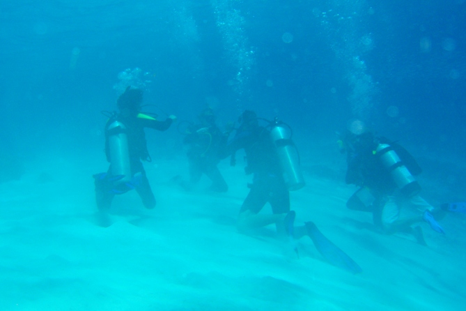 After a fairly windy passage and some strong currents cut our speed down, we arrived at the Gili Islands, a small group of three islands off the coast of Lombok, Indonesia. The plan was to get in the water and do some diving, enjoy some shore time, and then head out to Bali. For all the students taking the Open Water course, this was the first time in the sea, and it didn’t disappoint. The visibility was great, the water was warmish, and there were plenty of fish around to keep wandering eyes occupied. We went with a local operator to take us out to the two sites. After 30 minutes or so underwater, we had a good number of mermaids and mermen perfectly comfortable in their newfound environment, to the point of underwater sprints and a somewhat graceful backflip competition. After the dives, it was shore time to get some cold drinks, colder ice cream, and food, with the islands providing plenty of options for relaxing and watching the world go by. Shopping seemed to feature highly, and we were greeted with numerous pairs of fishing pants on people’s return. After dinner, we got the boat prepped for sail, and at 10 pm, we headed off to Bali. The wind was still strong, and we started slowly, but once round the corner, we had a current going in the right direction for a change which was niceall in all, a great day, some new experiences as with every other day. And chocolate ice cream on a tropical island, what could be better!