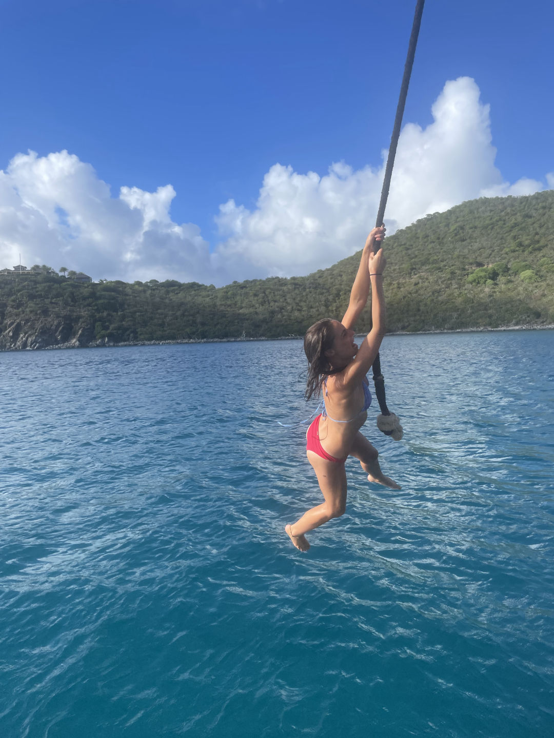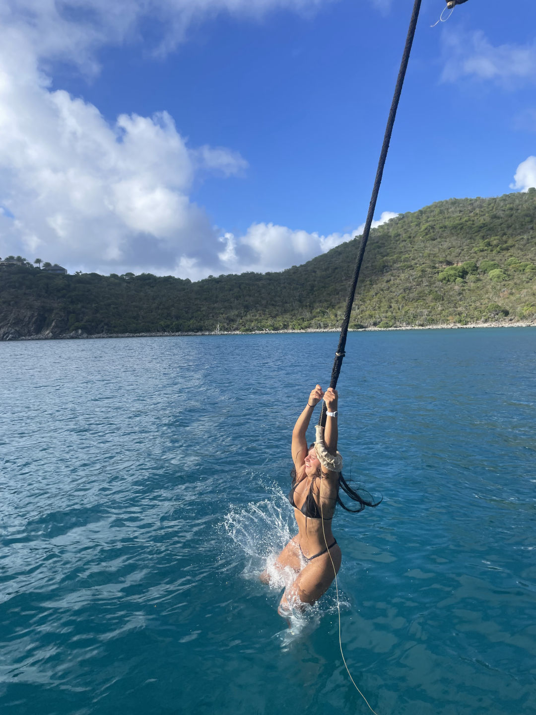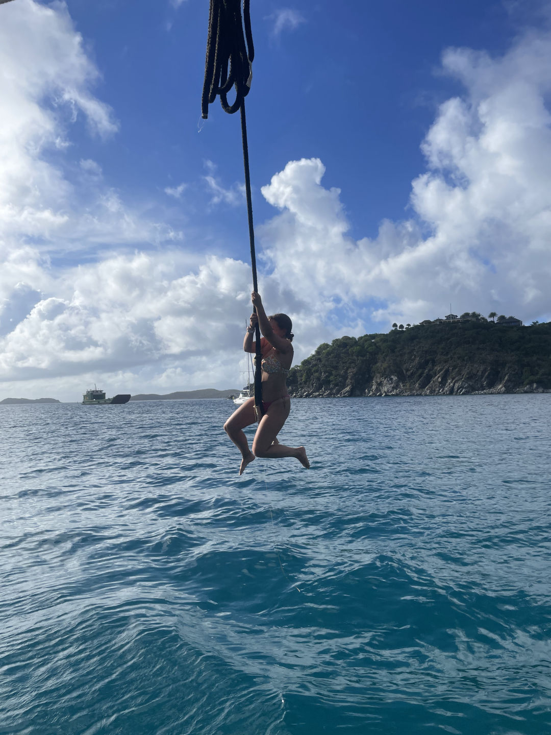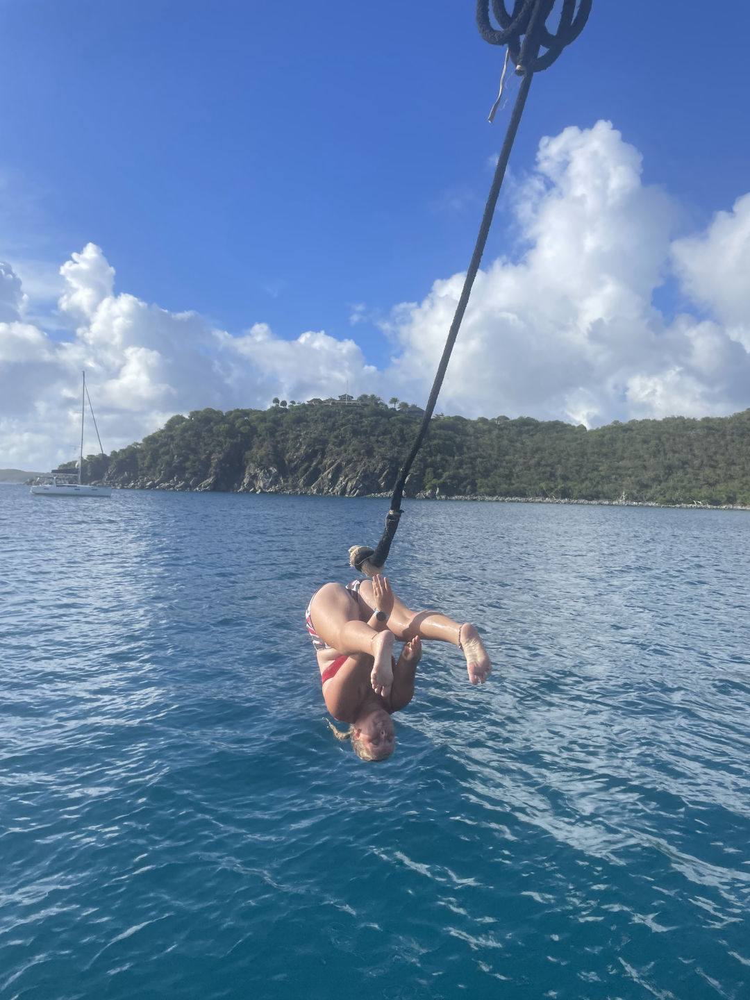 Next on the agenda was a much-awaited BOOM SWING!!! Ever since Ray, AJ, and I attempted to build a rope swing off the bow sprit, which Ari promptly broke, I have been eager to attempt the boom swing. Many individuals attempted rope swing backflips, pretty sick, and some rope swing showers, arguably the coolest shower I have ever taken (check the photos for proof that we do indeed bathe ourselves). After one of our fearless leaders, Samantha surfaced from her dive, we convinced her to also attempt the backflip. She warned us that she has not been super successful with the art of rope-swinging in the past, but we convinced her that it was worth a shot, and the worst case scenario is she fails tremendously, and we get some good blog content. In case you are wondering, Sam did, in fact, manage to achieve an upside-down position, followed by a head-first fall into the water below: a good first attempt to say the least.