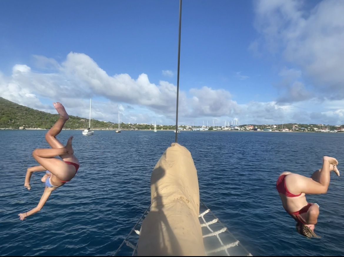 WHAT A DAY!!! After our third and final 🙁 Overnight passage, we made it to Virgin Gorda. Thanks, watch team #2 (Ash, Stallion, Kas, Ray, Hannah, Peyton, and Dessie), for anchoring the boat all on their own and letting the rest of the crew get a few more hours of sleep. Everyone was ready for a yummy taco lunch at noon, a classic boat meal. (Even though Peyton chose to serve unseasoned meat, all was well because the vegetarians shared their black beans) After cleanup, it was time to let our beautiful boat get some sleep too! The individuals not working on dive certs worked very hard to put the boat to bed and make sure that everything was flaked and organized nicely. If you are wondering what I was doing during this, it was swimming 16 timed laps around the boat… with a broken foot, but hey, at least I got out of the boat to bed. The rescue divers practiced some more skills, and some (aka Lauren aka cool blaze) had to wrap her hand in a trash bag to try to save her menacing rope burn from the salt water. Ultimately, she was unsuccessful… but it was worth a shot! Some of the boys also went on a quick dive to gather some data for our research projects due in two days. A little late to the game for sure, but I’m sure they will pull it all together nicely.