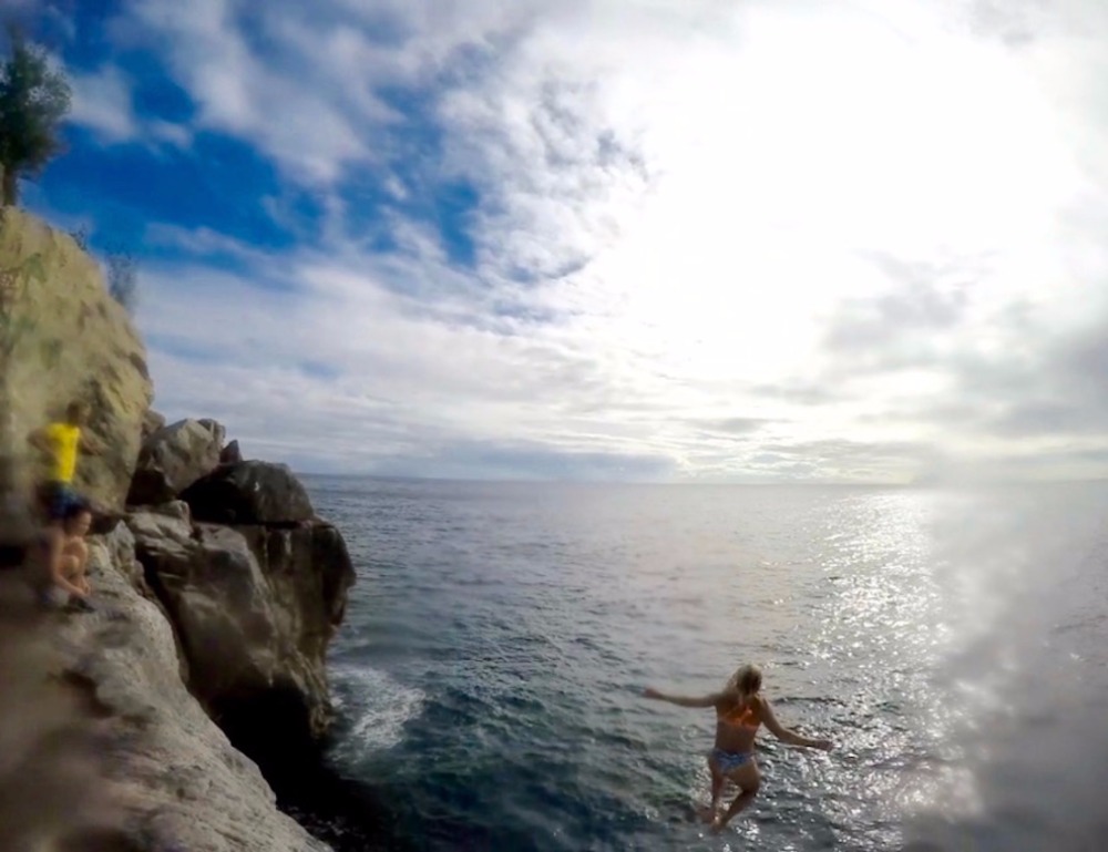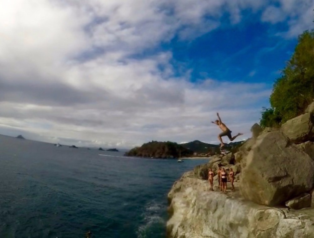 After a delicious banana pancake breakfast, the crew headed down below for the morning MTE class. Today, we learned how to determine our estimated position on a chart! After class, we had much-needed study time to prepare for our third marine biology exam. For lunch, we all went to shore. The majority of us went to the local creperie, where we ate way too much. Once we finished lunch, we met Nick on the dock and headed over to the beautiful Shell Beach. He took us the long way, but we made it eventually! From there, we all swam from the beach to a series of cliffs. We climbed to the top, which was 7 meters, and jumped off! Some of us even got on top of an even higher boulder that was 10 meters and jumped from there! We hung out there for a while with a little boy from London who proceeded to show off for us, spinning as he jumped off the cliffs. Afterward, we swam back to shore and got ice cream just in time to catch the dinghy ride back to Ocean Star. Back on board, we had fish tacos, and then, once clean up was completed, we all took our marine biology exam. For dessert, we all headed up on deck for Joako’s chocolate chip birthday cake. (HAPPY BIRTHDAY, JOAQUIN!!! 😀 ) And that’s the end of another wonderful day here on Ocean Star!