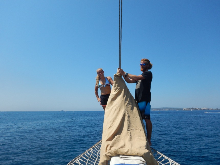 From our stern, we can see the island clearly. There are beautiful Spanish houses on the seaside, large grey boulders that look like they are good for jumping off, and a beach just down the way that looks like an amazing place to explore. Emma (our resident Spaniard) keeps telling us about the delicious snacks we can buy here and the best places to go in her country. I am excited to see it all and try everything that she’s been telling me about since I met her.