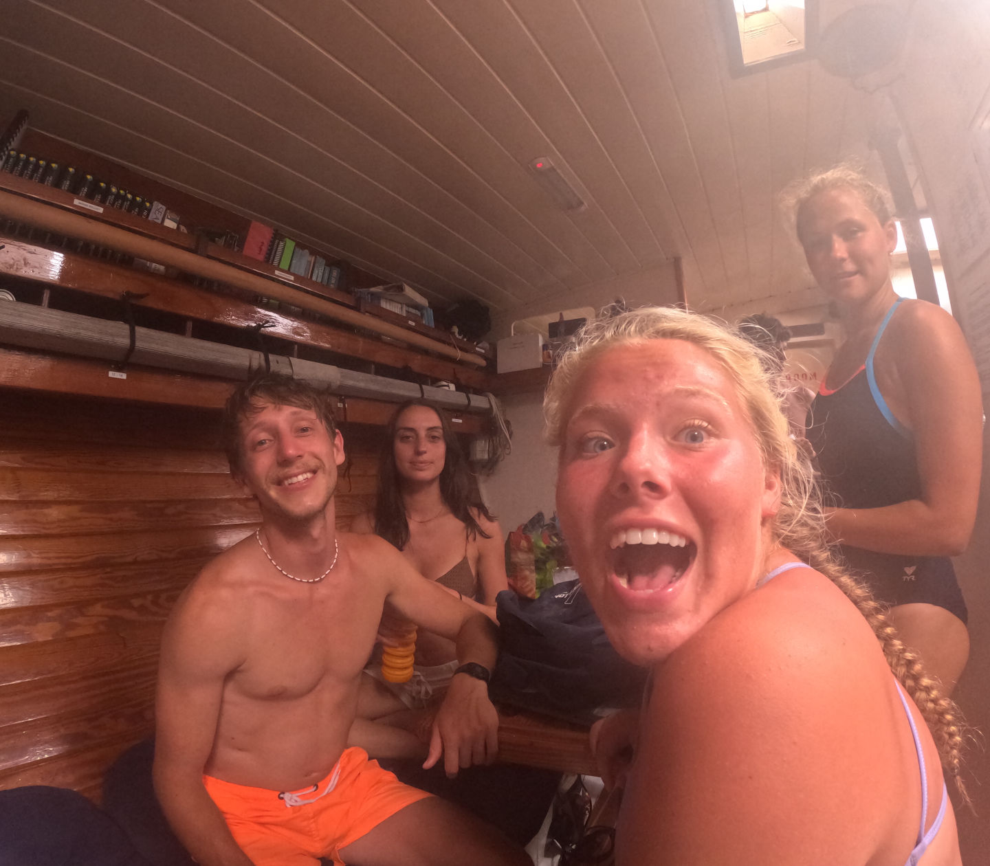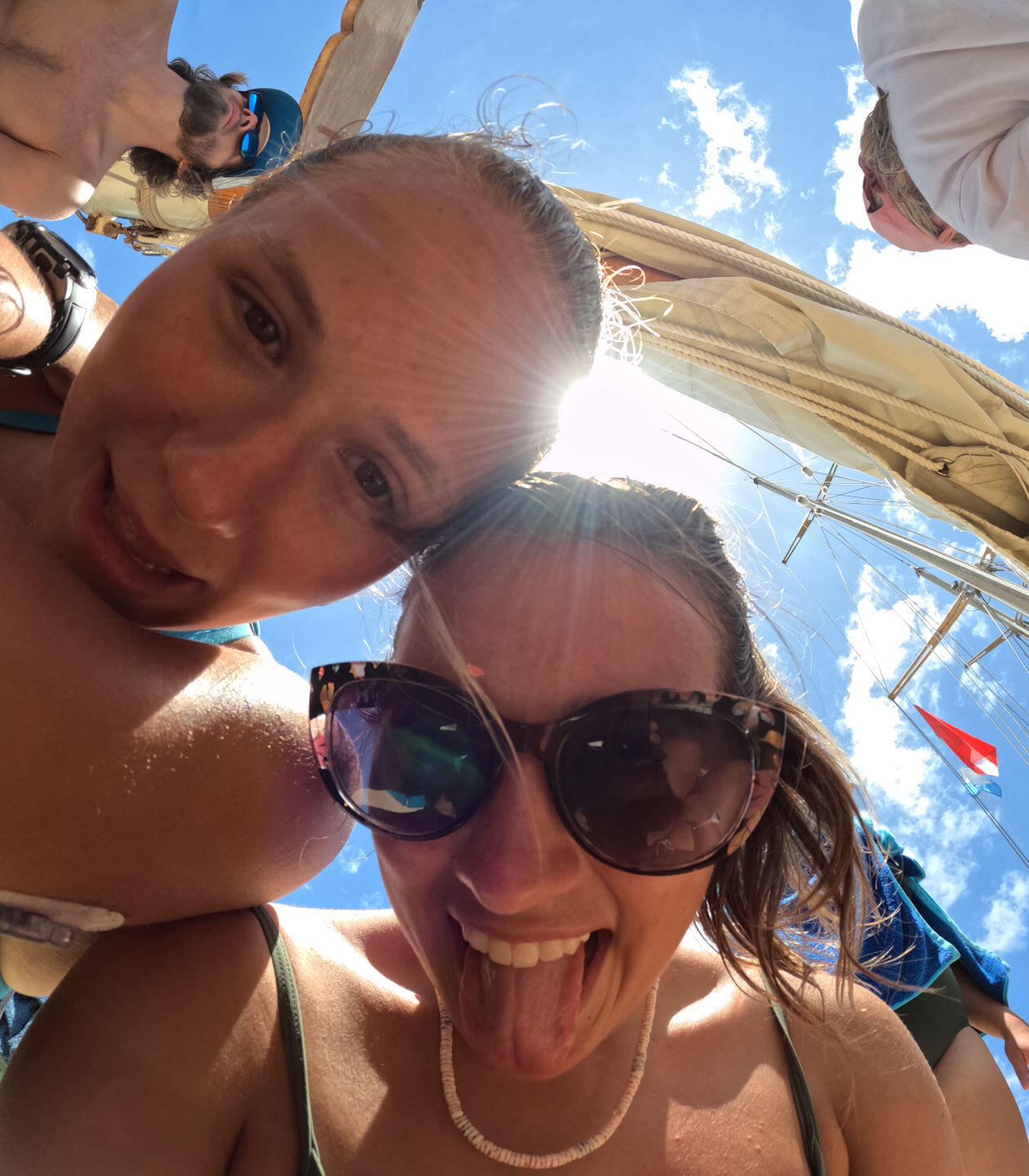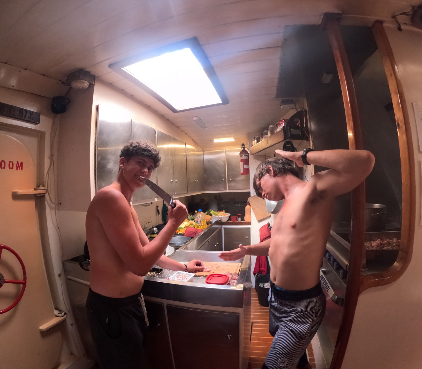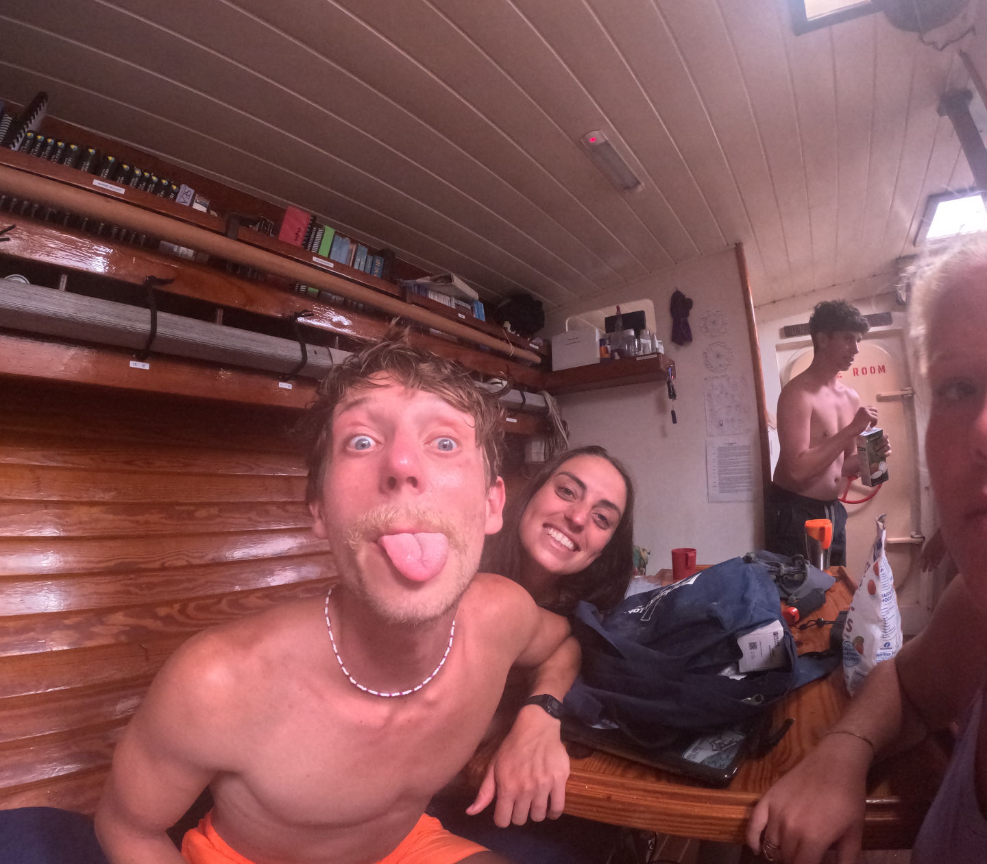 Jostled awake either by the rocking of the boat or the sound of fellow crew-mates moving about the saloon, everyone awoke before I had the chance to myself. The morning was a slow start, and the rest of the day would prove to follow a similar pattern. After a breakfast haunted by the ghastly French sausage, everyone filtered into the saloon for Oceanography, where we learned how the wind and water density move the tides across the globe. Shortly after, we got a demonstration of this effect as anyone who jumped in the ocean to cool off after class faced the incoming shore tide and had to fight to reach the ladder and return aboard. After a refreshing dip, we began to prepare for passage to our next destination. With sail covers removed, sheets run, and lifelines mostly cleared of any drying clothes, we completed our passage prep. By the time we had finished, the sun was high in the sky, and there was little shade left to protect us from her scorching rays. Hastily lunch was delivered to the deck, bowls of pasta salad came and went, and just after a short clean-up, the crew was ready to dive! I was set to dive with the second group, so while the first group went off to explore beautiful reefs, the others stayed behind, and I caught up on some much-needed RnR, sitting in the air-conditioned saloon snacking on fruit left over from our time in Dominica and open jars of Nutella with spoons we regained the energy the hot sun had taken from us. Not long after our snack break, the sound of our dingy Irv could be heard fast approaching, and we knew it was our time to kit up and get in the water. The dive was nothing short of magical; even before we descended, fish were swarming around our fins. My group conducted data collection, noting the biodiversity, water temperature, and salinity. After collecting our data, the rest of the dive was ours to enjoy. The reef was full of vibrant fish and coral that made you feel like you were in another world. coming up from our dive and arriving back on Ocean Star, my group was greeted with the smell of dinner, and it did not disappoint. We ended the day with one of the best sunsets I’ve seen so far and the rare but always satisfying dessert. Tomorrow holds the promise of our second overnight passage, and I, for one, cannot wait.