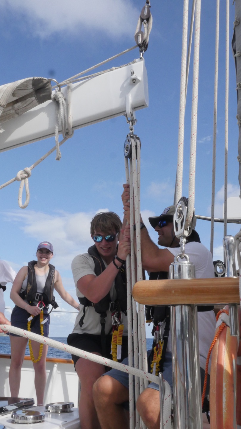 Climbing onto deck, my semi-new watch team (Me, Anda, Charlie, Nora, Mac, Dan) were greeted with the sun starting to rise. At 3:45? Odd. Anyway, I don’t mind, as the sun helps to keep me from nodding off in the dark. The rest of the watch was great with a good sunrise, good conversation, and most importantly a bowl of Reeces Puffs with NATE for breakfast (I receive a lot of hate for my passion of a daily bowl of the puffs but it will never stop me). After the early 4 hours, I decided to catch a couple more hours of Honk-Chooing (sleep). After a couple more hours of sleep, I woke up and had a lovely cup of joe to get going again.