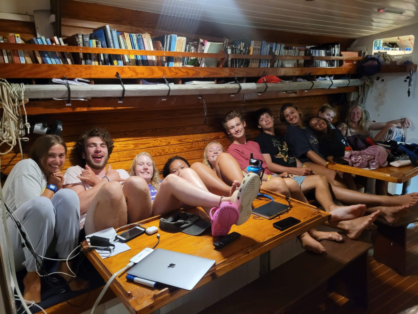 I woke to a calm, peaceful morning in Antigua and enjoyed the quietness as I got ready for the day, but then I had to wake everyone else up – goodbye, peace. Everyone woke up easily, all except Sierra, who woke with this evil glint in her eyes. Anyways, our double head chef team (R.I.P Mia) was in the kitchen, slaving away making…yogurt and cereal for breakfast. Thanks, Sunny and Rae. Staff was up and raising the anchor at this time – though we were supposed to leave by 6 – working hard like always. As today is our last day in Antigua, and we are heading to Nevis. We got moving and had breakfast as we motored out the anchor yard, where I overheard Sierra mumbling about whales and time to act – a little weirder than normal, but not that bad. Anyways We get far enough out where it’s that time – PDF time! Everyone races to get there, and Rae, Sunny, Fizz, and Kelly all jump – literally – jump into their shared hole because we’re soooo excited for safety. Everyone comes up and does triple buddy checks, and then we begin clean up.
