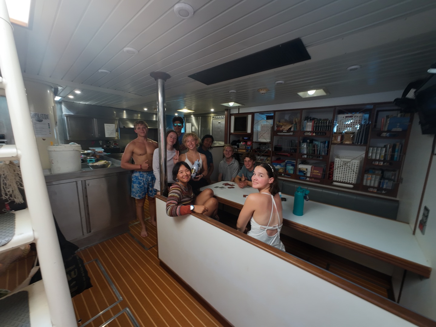 Long day today.. After being woken up at 2:45 am for anchor watch, my buddy Bryson made some ramen at about 3:30 am and absolutely loved watching if the boat was dragging or not. Then, at 4 am, our shift ended, and we woke up Ben and Emily for their shift. I finally went back to sleep (probably the best night of sleep so far) after an amazing watch, but not before I was woken up again at 6:45 am to be the skipper for the day. I started by waking everyone up at 7 am and having everyone muster in the cockpit for breakfast. We had a delicious breakfast, which was yogurt, granola, and fruit. Then everyone but my group geared up and got ready for their dive, whether it was the certified divers scrubbing the hull with Shane or Aidan and RRachel’sgroups doing their first open water dives off the boat.