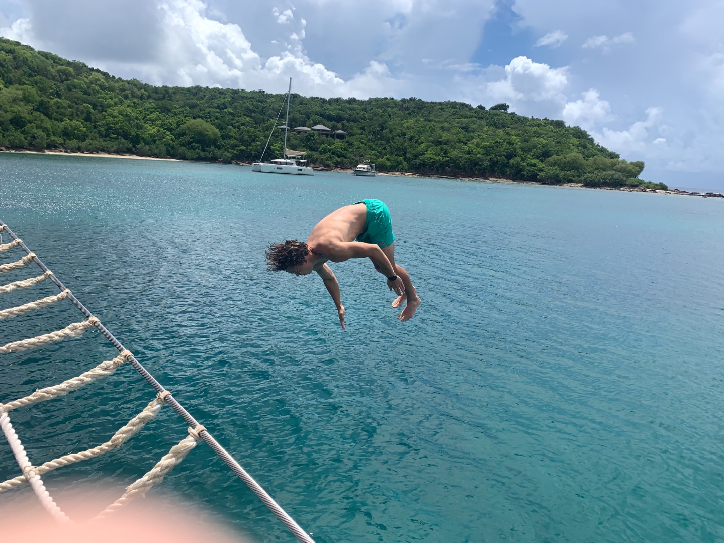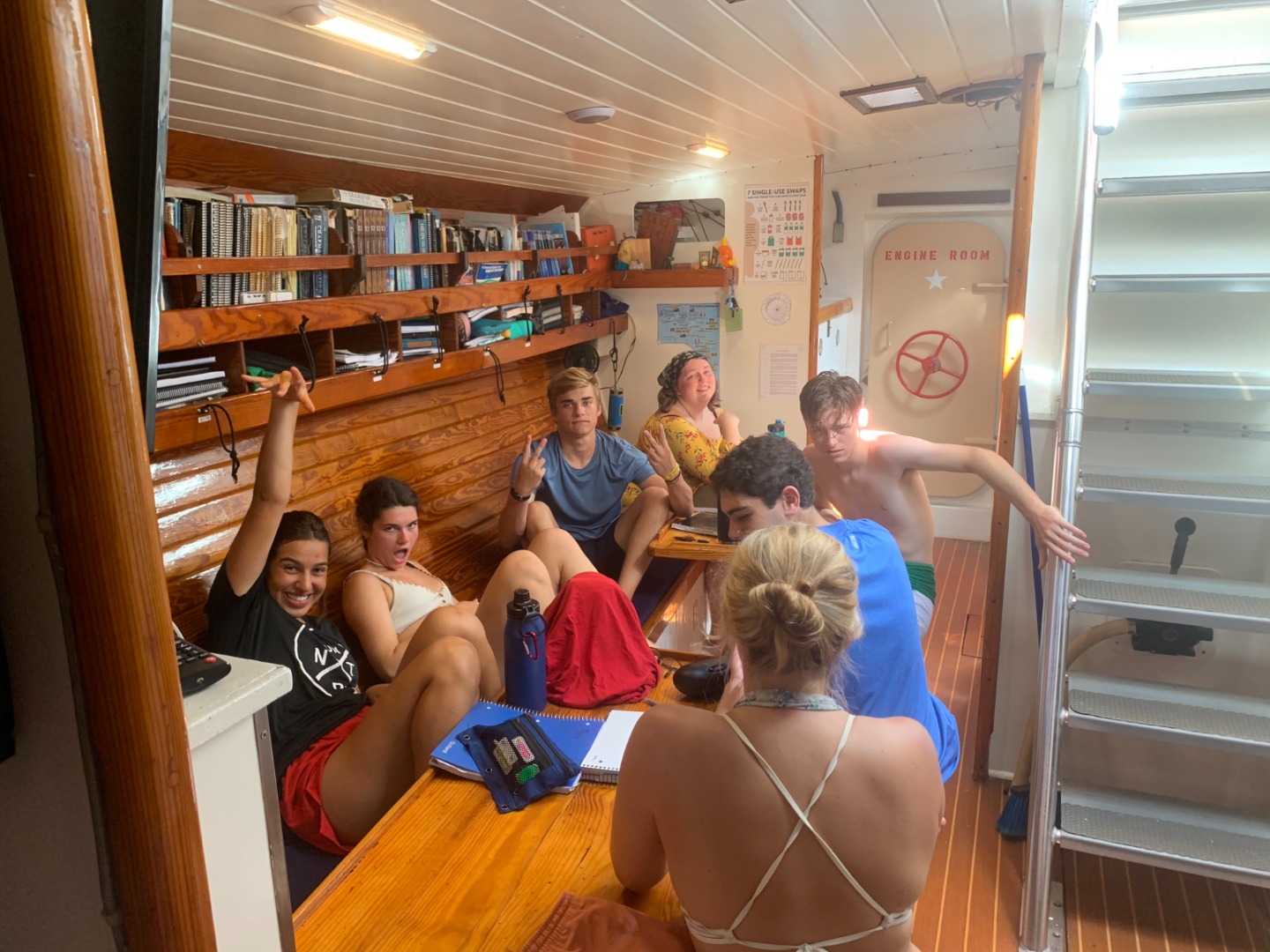 We have already hit our one-week mark, and most of the crew is clearly beginning to consider the ship their home. The divers this morning were surprised to have encountered a barracuda and a nurse shark. I was very tempted to pet it. However, I was advised not to. Meanwhile, the rest of the crew were just finishing up their certifications and were finally prepared to jump into their first recreational dive in the afternoon. After lunch, crewmates on deck shared songs with some personal meaning for the rest of us to enjoy. Soon after, the newly certified divers took a dingy out to the Pillars of Hercules and began their exploring the site. Thanks to Isabel, the group was lucky to witness an octopus and a spotted eagle ray. Back on the ship, daring sailors practiced their acrobatic skills jumping off the boat. Unfortunately, Kiara did not rotate enough while performing a front flip and flopped perfectly on her back, though rest assured she’s okay. After finishing up an exquisite dinner prepared by today’s chef, Steve, we all shared each other dream jobs. All the members of Ocean Star are extremely ambitious and hungry for more exciting experiences that the trip will bring them.