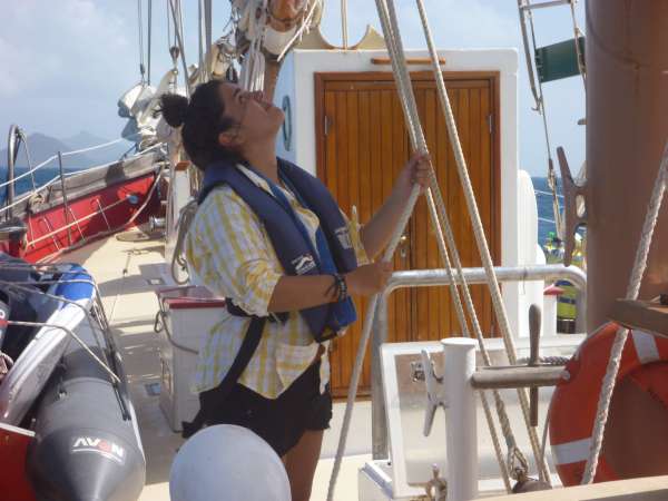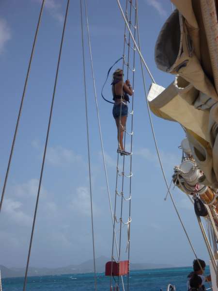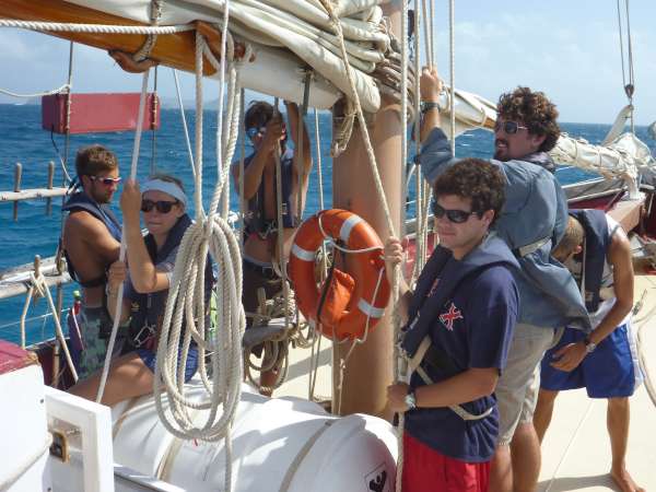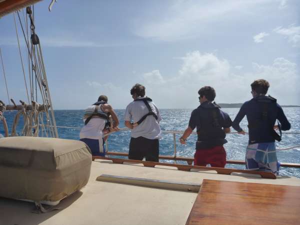 This morning, we woke up for a quick breakfast before prepping OStar for passage. We said goodbye to Tobago Cays and started our journey towards Bequia. We did some successful sailing, which everyone was excited about. The wind was really strong, and we had all the sails out. We ate lunch underway and switched through watch teams every 2 hours. We arrived in Bequia a little before dinner time and took showers to wash off the grime from the day. We had a delicious risotto and chicken salad dinner, which really hit the spot. After dinner, we made the schedule for the week. We decided when we were going to have all the tests and shore time, and there was a free time labeled whale boner, which caused some confusion and multiple inappropriate jokes, which we later found out was the name of the bar we were going to go to. Then, we had an interesting MTE class to close out the day. We played an epic game of Jeopardy to help study for the mid-term. The two teams were going head to head for most of the game, and it all came down to final jeopardy. We then went to bed knowing we would sleep soundly because we didn’t have an anchor watch and were excited to explore the shores of Bequia the next morning.