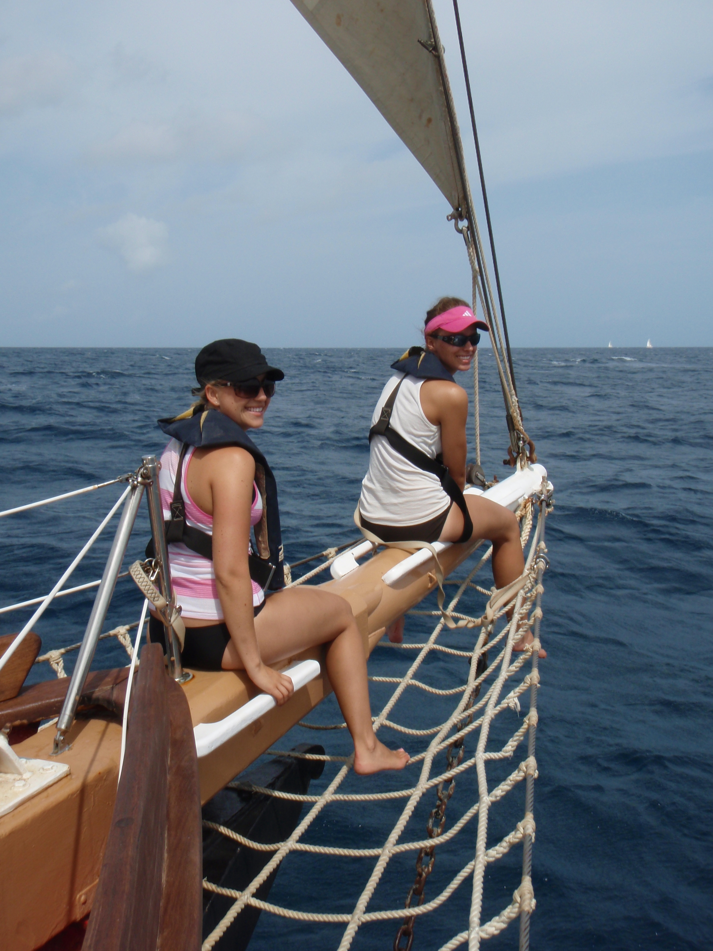 Today, we actually slept in and didn’t have breakfast until 7:30. It was followed, as always, by a skipper’s brief. We then got the boat ready to sail while Captain Dan went to shore and pulled up the anchor as soon as he got back. After that, we took a sail to Saba (the magical island of unicorns, fairies, gnomes, etc., as Dan calls it). Once we got there, we picked up a mooring right by The Ladder, took showers, and had dinner. After that, we had a quick cleanup and a super-sized version of MTE class.