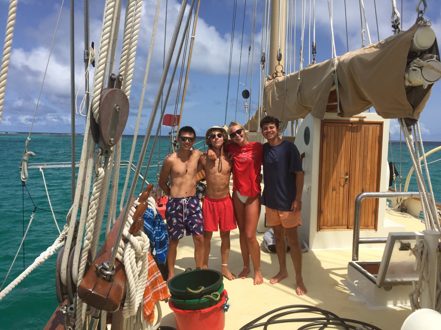 On our trip back to Ocean Star, we had some surprise visitors in the form of some eagle rays swimming through the shallows. Once we were back on board, it was study time for the young crew, preparing for their marine science exam after dinner. Speaking of dinner, the chefs treated us to a scrumptious chicken parmigiana. As I write this, they are busy standing behind me (if they finished their exam) or still trying to remember everything they can about marine invertebrates.