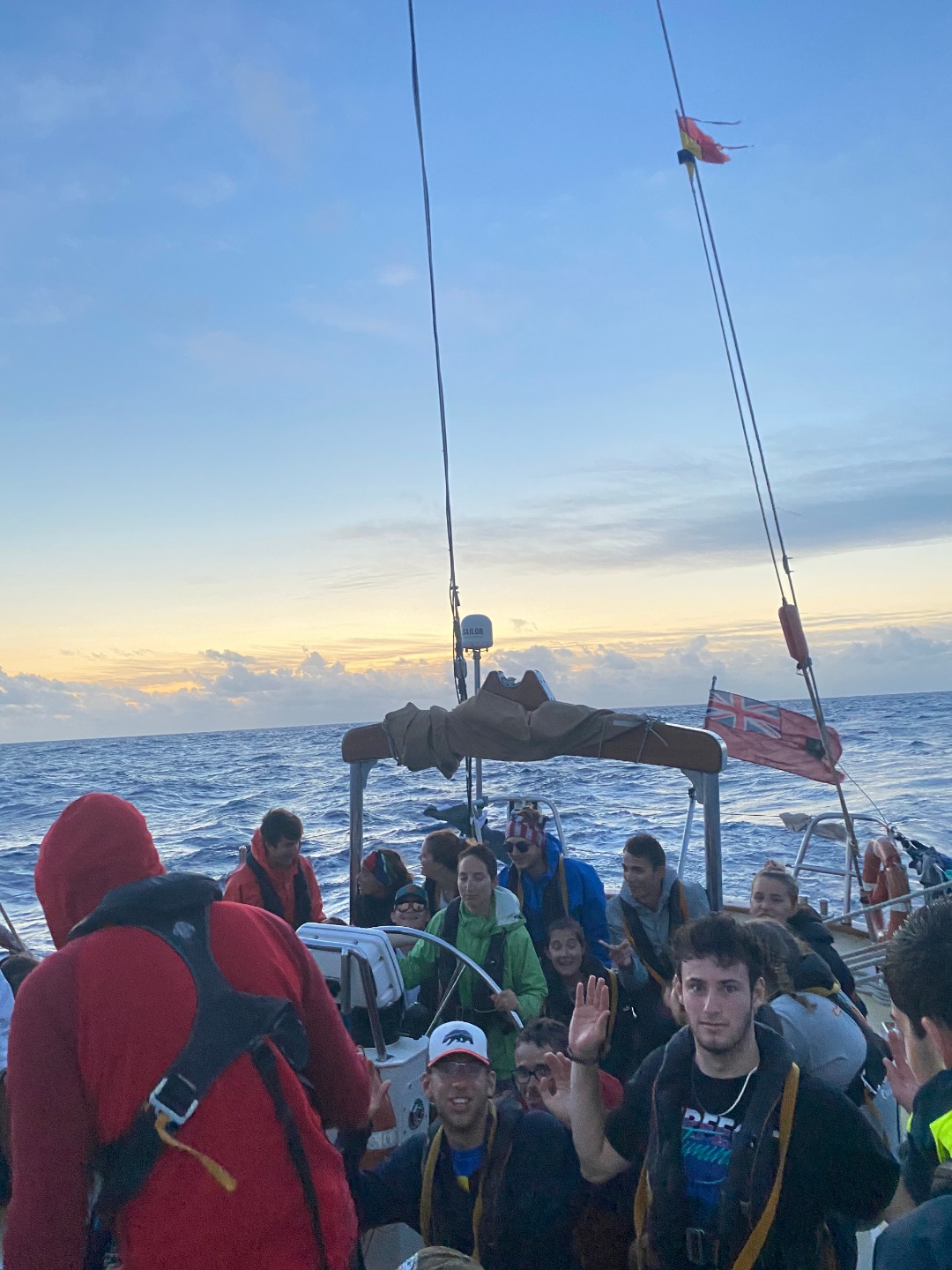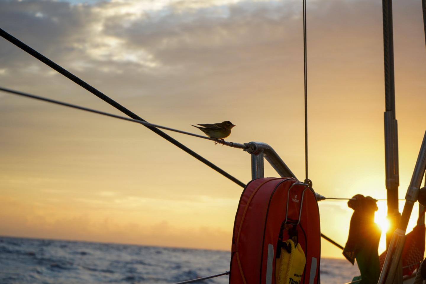Today was a great day underway. The day started with the best sunrise yet. Shortly after that, we were joined by a bird 1300 miles away from shore. As the day went on, the weather got better and better, and the sea state stayed calm all day. The afternoon kicked off with a leadership personality quiz and class. We also had our first quiz today in oceanography. After classes, we had some downtime and ended the evening with a curry dinner. Jake made naan which looked funny but tasted great. Now we settle into our watches for the night.