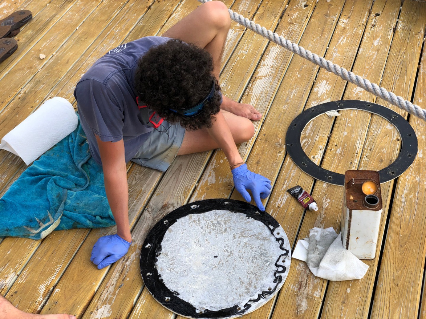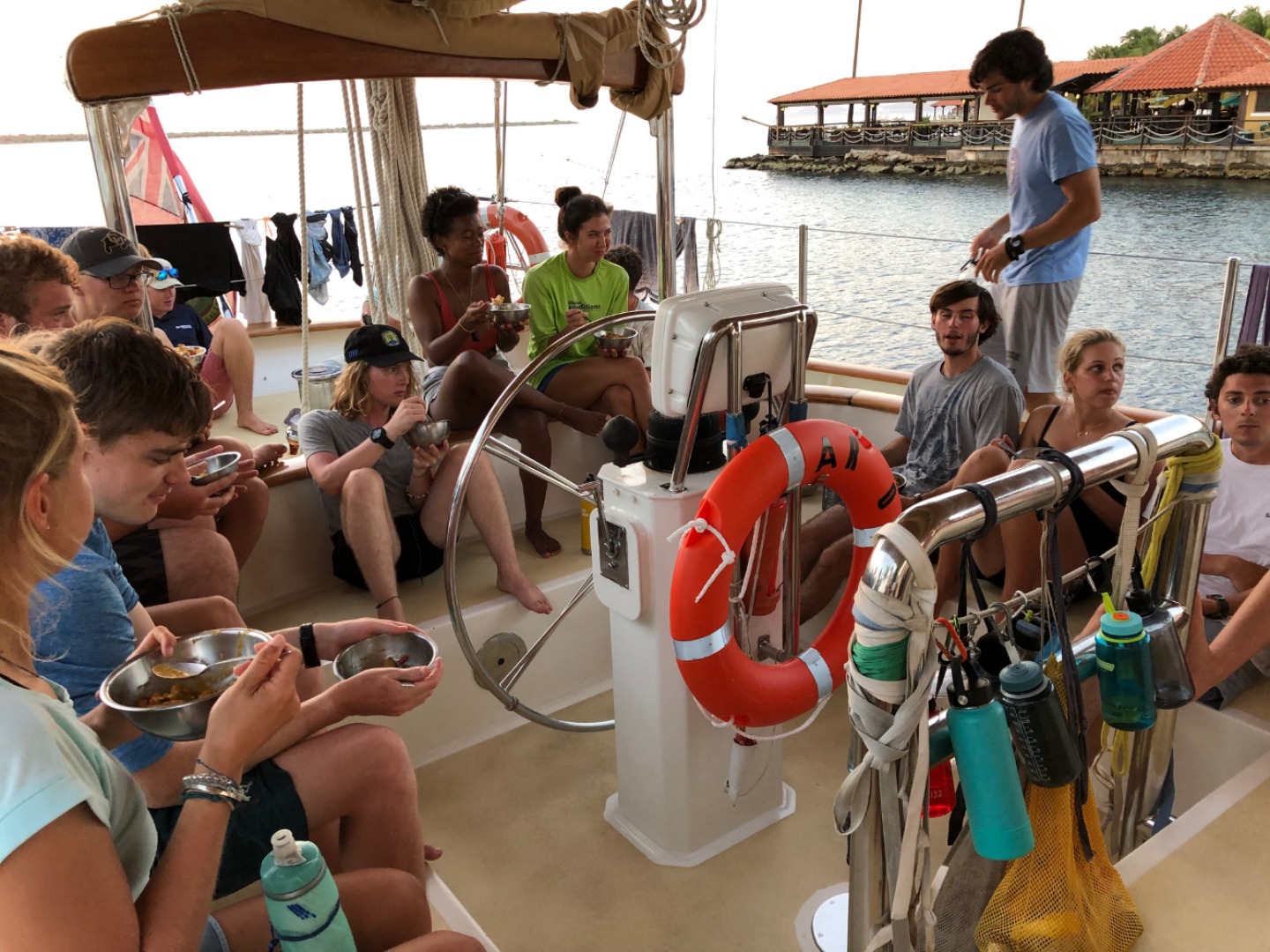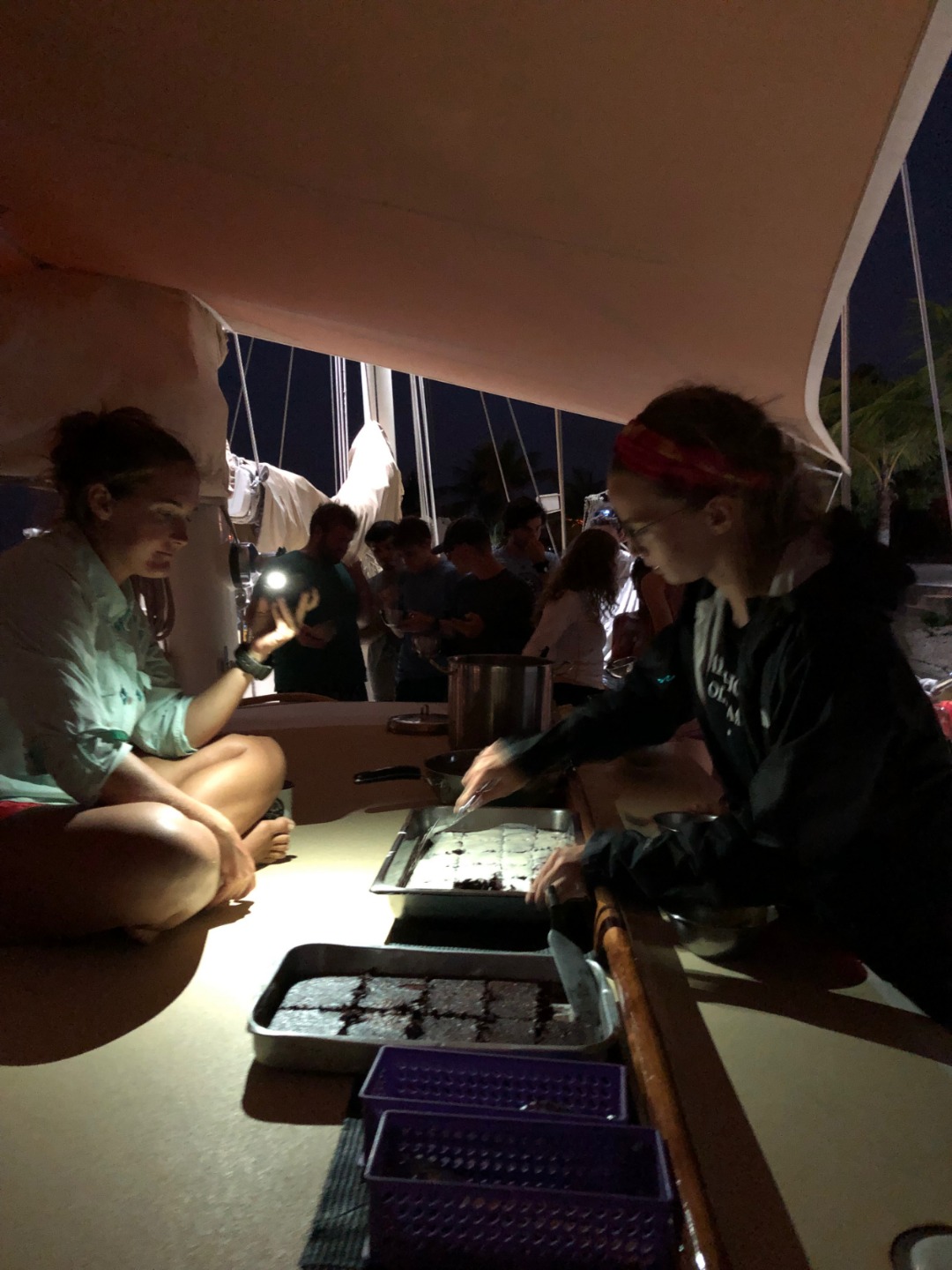 Big shout out to Tim, David, and Jack for doing the especially dirty jobs! Now we are about to start our Seamanship class with Meg and Tim before we head to bed for a restful night of sleep.