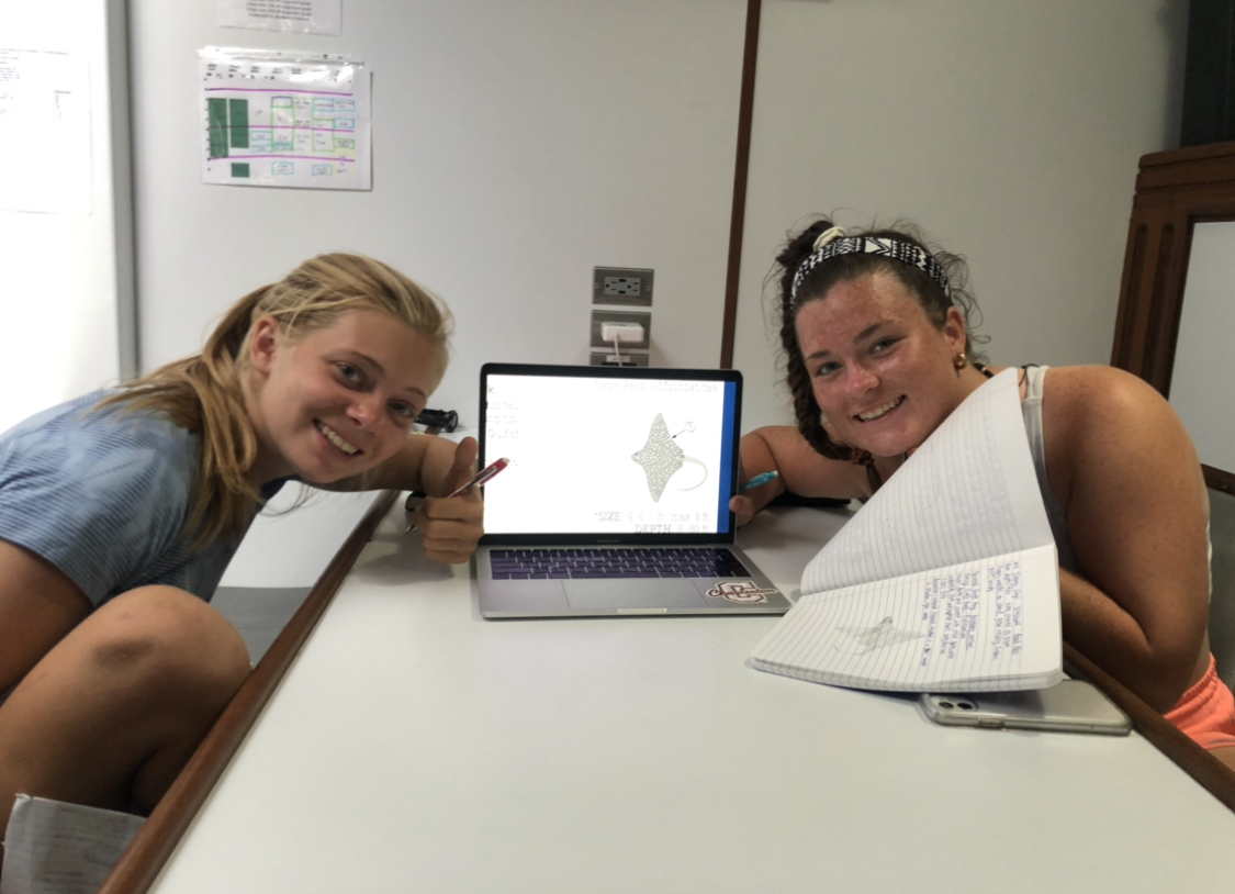 Annika and Ellie doing homework while they’re off watch